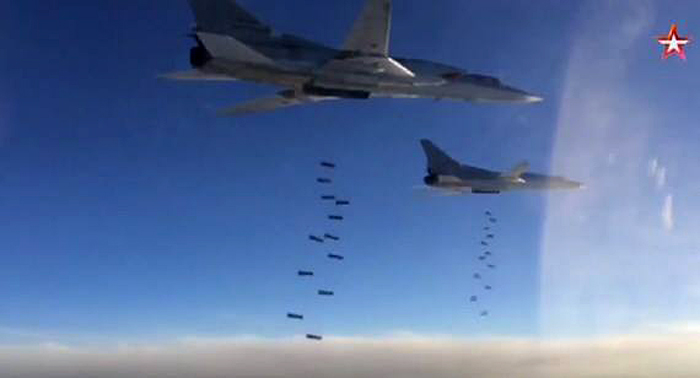 តាមការប្រកាសរបស់រុស្ស៊ីយន្តហោះ ទម្លាក់គ្រាប់ប្រភេទ Tubolev-95 ហោះ ហើរចេញពីប្រទេសរុស្ស៊ីឆ្លងកាត់ប្រទេសអីុរ៉ង់ចូលទៅវាយប្រហារនៅប្រទេសស៊ីរី។ ការវាយប្រហារខាងលើរបស់រុស្ស៊ីសម្តៅ ទីតាំងហ្វឹកហាត់របស់កម្លាំងទាហានអ៊ិស្លាម បង្កើតរដ្ឋ និងទីបញ្ជាការរបស់ក្រុមនេះតែម្ដង។
