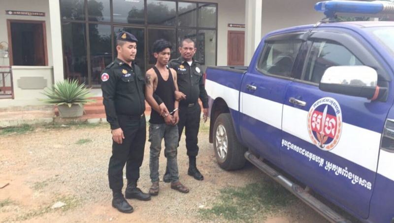 ខេត្តឧត្ដរមានជ័យ៖ កាលពីវេលាម៉ោង១០និង៣០នាទីព្រឹក ថ្ងៃទី១៤ ខែមិនា ឆ្នាំ២០១៧ កម្លាំងមូលដ្ឋាន កងរាជអាវុធហត្ថស្រុកត្រពាំងប្រាសាទ បានធ្វើការឃាត់ខ្លួនជនសង្ស័យម្នាក់ ស្ថិតនៅចំណុចភូមិទំនប់អភិវឌ្ឍន៍ ឃុំអូរស្វាយ ស្រុកត្រពាំងប្រាសាទ ខេត្តឧត្តរមានជ័យ ជាប់ពាក់ព័ន្ធករណីប៉ុនប៉ងមនុស្សឃាតដោយចេតនា។