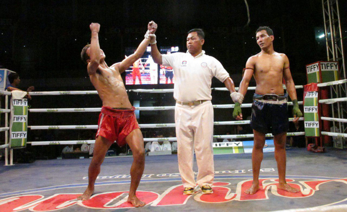 ភ្នំពេញ៖ អ្នកប្រដាល់ ឡុង សំណាង ក្លិបសាលវ័ន្តកីឡា និងកីឡាករ ឃីម បូរ៉ា អ្នក ប្រដាល់ក្លិបរស្មីភូមិគាបខេត្តបន្ទាយមាន ជ័យធ្វើឲ្យអ្នកនិយមទស្សនាការប្រកួតកីឡា ប្រដាល់រារែកចិត្តយ៉ាងខ្លាំងក្នុងវគ្គផ្តាច់ព្រ័ត្រ ដើម្បីគ្រងតំណែងម្ចាស់ពានរង្វាន់ជើងឯក TV5 Knock Out Series ទម្ងន់៦០គីឡូក្រាម ដែលមានទឹកប្រាក់៤.០០០ដុល្លារអាមេរិក នៅសង្វៀន TIFFY Arena នាល្ងាចថ្ងៃទី ១៨ ខែមីនា ឆ្នាំ២០១៧នេះ ។
