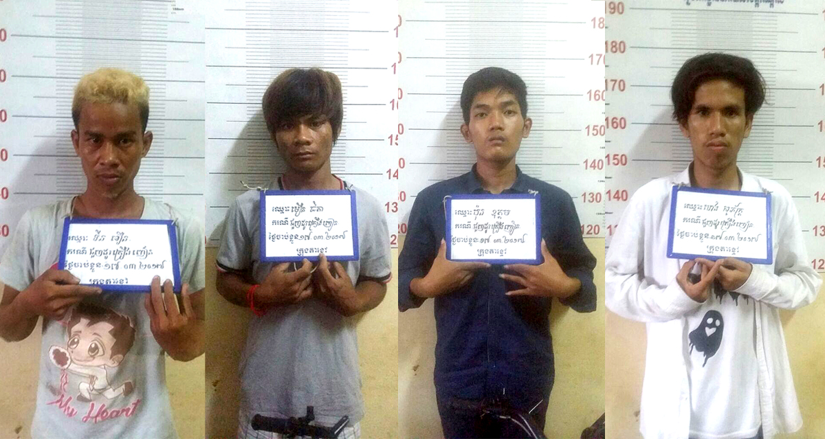 តាមរបាយការណ៍នគរបាលបានបង្ហាញថា ជនសង្ស័យត្រូវបានចាប់ខ្លួនទី១.ឈ្មោះ មឿ ធីតា ហៅចាវ ភេទប្រុស អាយុ២៤ឆ្នាំ ជនជាតិខ្មែរ មុខរបរលក់ថ្នាំញៀន មានទីលំនៅភូមិព្រែកហូរលិច សង្កាត់ព្រែកហូរ ក្រុងតាខ្មៅ ខេត្តកណ្តាល ទី២.ឈ្មោះ ទីន ខឿន ភេទប្រុស អាយុ២៨ឆ្នាំ មានទីលំនៅ ភូមិព្រែកហូរកើត សង្កាត់ព្រែកហូរ ក្រុងតាខ្មៅ ខេត្តកណ្តាល ទី៣.ឈ្មោះ ប៉ុន ឧត្តម ភេទប្រុស អាយុ១៦ឆ្នាំ មានទីលំនៅភូមិស្ទឹងជ្រៅ សង្កាត់ដើមមៀន ក្រុងតាខ្មៅ ខេត្តកណ្តាល និងទី៤.ឈ្មោះ ហេង សុភ័ក្រ្ត ភេទប្រុស អាយុ១៧ឆ្នាំ មានទីលំនៅភូមិទួលរកា សង្កាត់ចាក់អង្រែក្រោម ខណ្ឌមានជ័យ រាជធានីភ្នំពេញ។