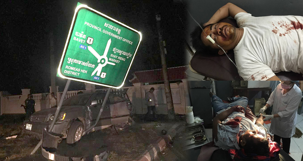 យោងតាមសមត្ថកិច្ចនគរបាលក្រុងស្វាយរៀងបានឲ្យដឹងថា បុរសដែលរងរបួសធ្ងន់ ស្រាលមានឈ្មោះ ហង្ស កក្ដដា អាយុ ៣០ ឆ្នាំ មុខរបរ បញ្ជាការដ្ឋានអង្គរក្ស រស់នៅភូមិ ដំបូកខ្ពស់ ឃុំ ដំបូកខ្ពស់ ស្រុក អង្គរជ័យ ខេត្ត កំពតជាអ្នកបើកបរ ,២ ឈ្មោះ សែម កុសល ភេទប្រុស អាយុ ២៩ ឆ្នាំ មុខររបរ បញ្ជាការដ្ឋានអង្គរក្ស រស់នៅ ខ័ណ្ឌច្បារអំពៅ រាជធានីភ្នំពេញ រងរបួសធ្ងន់, ៣ ឈ្មោះ ផ្លេក វិធាវី ភេទ ប្រុស អាយុ ៣១ ឆ្នាំ មុខរបរ អង្គរក្ស រស់នៅភូមិ ព្រៃត្រុំ ឃុំ ញរ ស្រុក កំពង់រោទិ៍ ខេត្ត ស្វាយរៀង រងរបួសធ្ងន់, ៤ ឈ្មោះ មុត សាវន ភេទ ប្រុស អាយុ ៣១ ឆ្នាំ មុខរបរ អង្គរក្ស រស់នៅស្រុកបាទី ខេត្ត តាកែវ របួសស្រាល, ៥ ឈ្មោះ ព្រហ្ម សុខា ភេទ ប្រុស អាយុ ៣៥ ឆ្នាំ មុខរបរ អង្គរក្ស រស់នៅស្រុកត្រាំងកក់ ខេត្ត តាកែវ របួសស្រាល, ៦ ឈ្មោះ ណុប ចន្ថា ភេទ ប្រុស អាយុ ៣០ ឆ្នាំ មុខរបរ អង្គរក្ស រស់នៅភូមិ ព្រៃត្រុំ ឃុំ ញរ ស្រុក កំពង់រោទិ៍ ខេត្ត ស្វាយរៀង របួសស្រាល និងឈ្មោះ តុលា ភេទ ប្រុស អាយុ ២៧ ឆ្នាំ មុខរបរ អង្គរក្ស រស់នៅខេត្ត ព្រវែង របួសស្រាល។