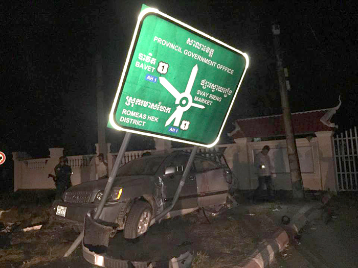 បើតាមប្រភពឲ្យដឹងថា នៅមុនពេលកើតហេតុគេឃើញ រថយន្តហាយឡែនឌ័រមួយគ្រឿង បើកបរពីកើតទៅលិចលុះដល់ចំណុចកើតហេតុខាងលើ ជាផ្លូវកោង ស្រាប់តែ រថយន្តបែកកង់ទៅបុករង្វង់មូលបំបែក ចូលក្រុងស្វាយរៀងខាងមុខមន្ទីរអប់រំ ហើយបន្តទៅបុកឡើងសួនច្បារហោះផ្លោងទៅបុកនឹងស្លាកប៉ាន់ណូ ដាច់កង់ក្រោយទាំង២បណ្តាលឲ្យរងរបួសធ្ងន់២នាក់ ស្រាល៥នាក់ផងដែរ ។
