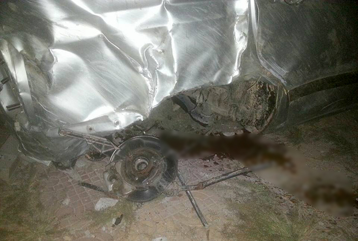 ចំណែករថយន្ដម៉ាក ហាយឡេនឌ័រ ពណ៌ទឹកប្រាក់ ពាក់ផ្លាកលេខ ភ្នំពេញ ២AK ៦២៦៤ ខូចខាតស្ទើរទាំងស្រុង។