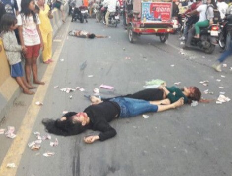 ភ្នំពេញ ៖ មនុស្សជាង១០នាក់ ត្រូវបានស្លាប់ និងរបួស បន្ទាប់ពីមានរថយន្តមួយគ្រឿង បើកបញ្ច្រាសបុករះអ្នកជិះម៉ូតូ នៅល្ងាចថ្ងៃទី២៧ ខែមីនា ឆ្នាំ២០១៧នេះ ស្ថិតនៅម្ដុំច្រមុះជ្រូកក្បាលថ្នល់ ខណ្ឌចំការមន ៕