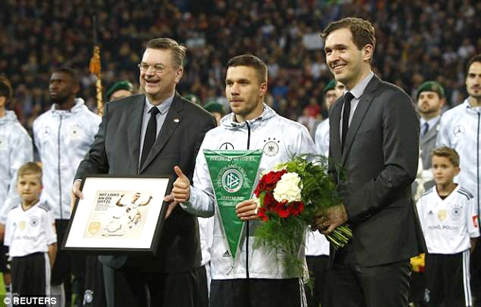 ជាងនេះទៅទៀតអ្នកគាំទ្រអាល្លឺម៉ង់បាន ធ្វើពិធីលាដល់កីឡាករជើងចាស់ Lukas Podolski ដែលធ្វើឲ្យរូបគេរំភើបខ្លាំងស្ទើរស្រក់ទឹកភ្នែក ។