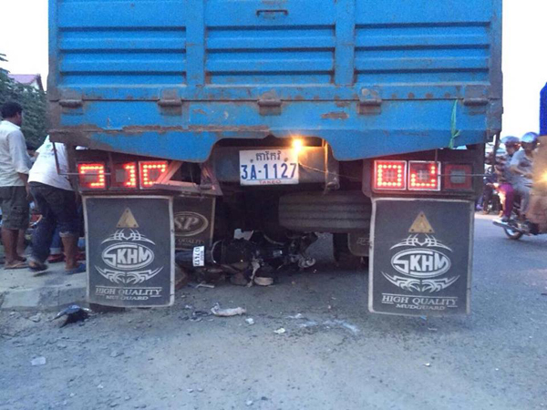 ខេត្តតាកែវ៖ ស្ត្រីម្នាក់បានស្លាប់ភ្លាមៗនៅនឹងកន្លែងកើតហេតុ បន្ទាប់ពីត្រូវបានរថយន្តដែលបើកបរពីទិសដៅបញ្រ្ចាសគ្នាបុកយ៉ាងពេញទំហឹង ។ហេតុការណ៍នេះកើតឡើងនៅថ្ងៃទី២៨ ខែមីនា ឆ្នាំ២០១៧ វេលាម៉ោង ១៧និង៥០នាទី ស្ថិតនៅលើផ្លូវជាតិលេខ ៣ ចន្លោះគីឡូម៉ែត្រលេខ៤៣ លេខ៤៤ ក្នុងភូមិត្រាំខ្នារ ឃុំសូភី ស្រុកបាទី ខេត្តតាកែវ ។