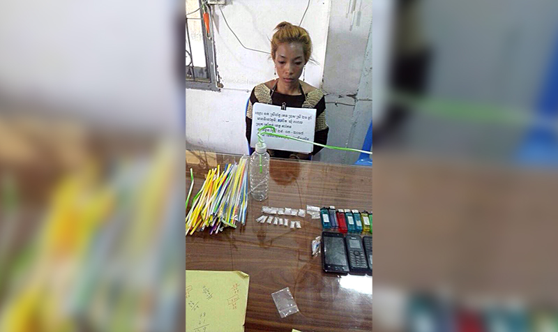 ខេត្តតាកែវ៖ នារីវ័យក្មេងរូបស្រស់ម្នាក់ត្រូវបានកម្លាំអធិការដ្ឋាននគបាលស្រុកបាទ ឃាត់ខ្លួនភ្លាមៗពីបទប្រើប្រាស់ និងចែកចាយគ្រឿងញៀន ។