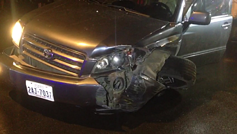 ភ្នំពេញ៖ បុរសម្នាក់បើករថយន្ដមួយគ្រឿងម៉ាក ហាយឡែនឌ័រ ដែលម្ចាស់ទំនងជាស្រវឹងស្រា ហើយបើកបរក្នុងល្បឿនយ៉ាងលឿន ក៏ជ្រុលចង្កូតទៅបុកក្បាលនាគពុះចែកទ្រូងផ្លូវបាក់អស់ចំនួន១កង់ ឯរថយន្ដបង្ករងការខូចខាតមួយចំហៀងផ្នែកខាងមុខស្ទើរតែទាំងស្រុង។