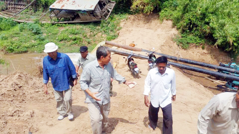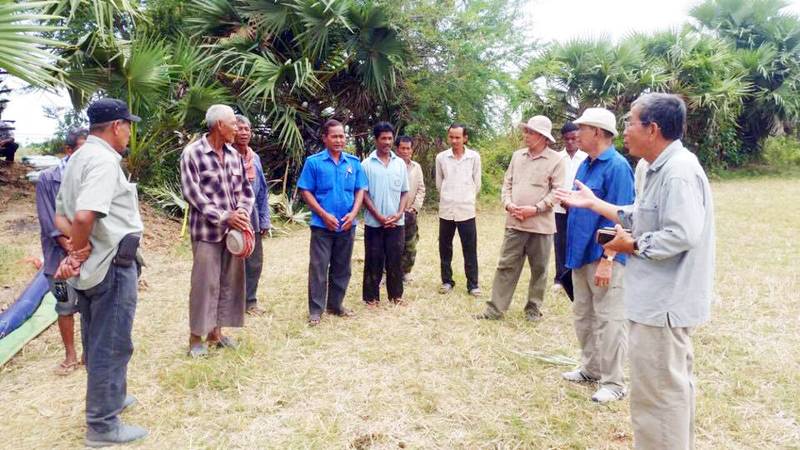 ខេត្តកណ្តាល ៖ លោក លី ចាណា អនុរដ្ឋលេខាធិការ ក្រសួងធនធានទឹក និងឧតុនិយម រួមដំណើរដោយ លោក លឹម វីរក្ស អគ្គនាយករងកិច្ចការបច្ចេកទេស មន្ត្រីជំនាញរបស់ក្រសួង និងមន្ទីរធនធានទឹក និងឧតុនិយមខេត្តកណ្តាល នាព្រឹកថ្ងៃទី២៩ ខែមីនា ឆ្នាំ ២០១៧ បានចុះពិនិត្យការងារអន្តរាគមន៍សង្គ្រោះស្រូវប្រាំង នៅក្នុងឃុំរកាកោងទី១ និង ឃុំរកាកោងទី២ ស្រុកមុខកំពូល ខេត្តកណ្តាល ។
