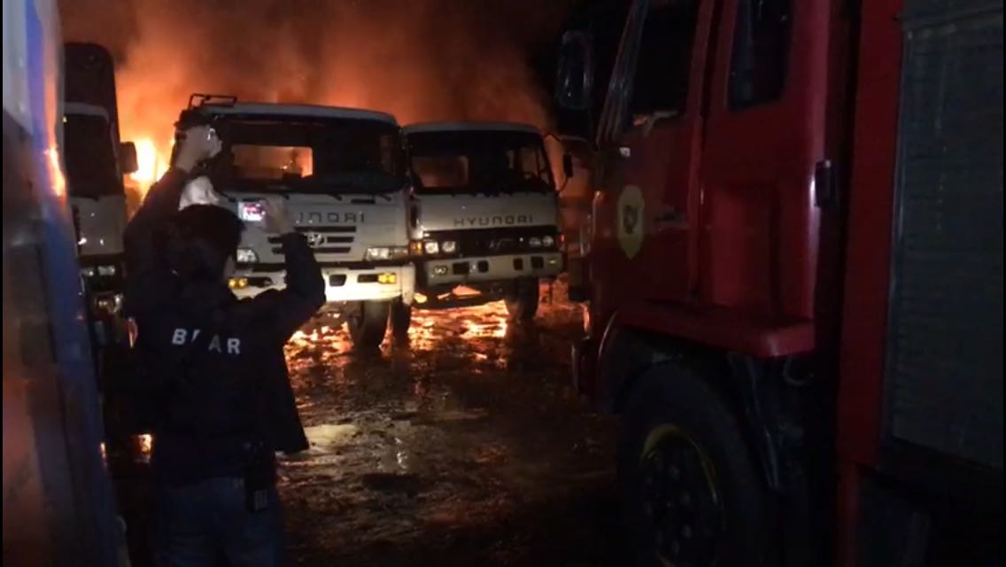 ភ្នំពេញ ៖ ឃ្លាំងរថយន្តយីហោហ៊ីយ៉ាន់ដាយមួយកន្លែងនៅក្នុងមូលដ្ឋានខណ្ឌឫស្សីកែវ ត្រូវអគ្គីភ័យឆាបឆេះយ៉ាងខ្លាំង បង្កឲ្យមានការភ្ញាក់ផ្អើលទាំងយប់ និងមានរថយន្តអគ្គីភ័យអន្តរាគមន៍ជាច្រើនគ្រឿង ។
