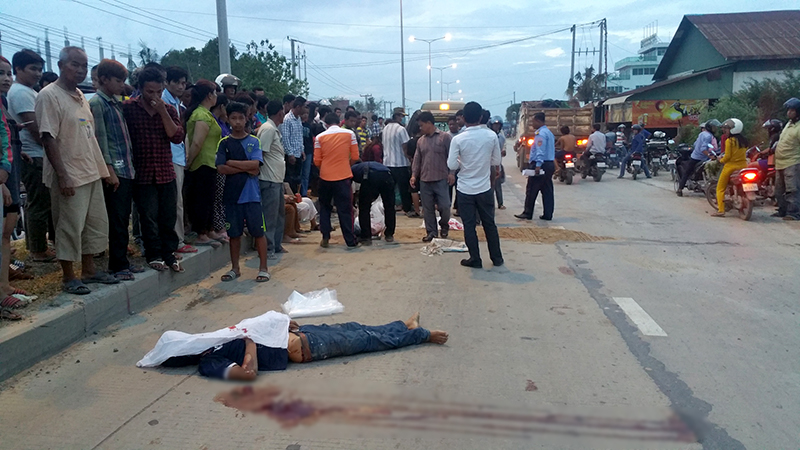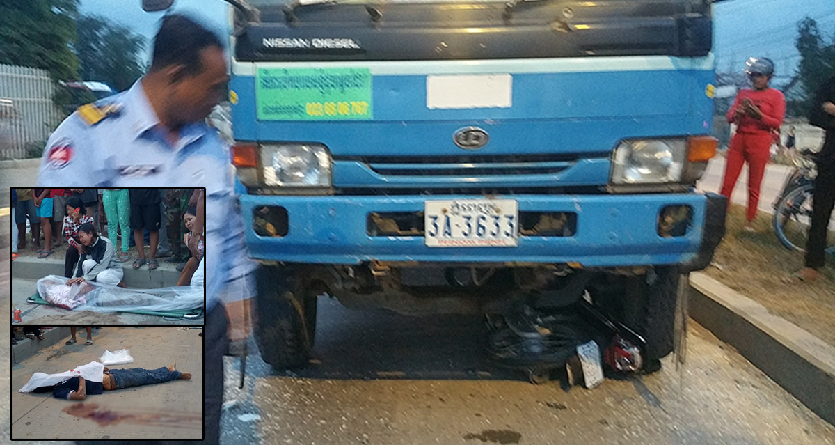 ភ្នំំពេញ៖ យុវជន២នាក់បានស្លាប់បាត់បង់ជីវិតភ្លាមៗនៅនិងកន្លែងយ៉ាងអាណោចអាធ័មកណ្តាលផ្លូវលាយឡំនិងឈាមហូរចេញមកពេញផ្លូវគួរឲ្យរន្ធត់បំផុតខណៈជិះម៉ូតូឌុបគ្នាតាមផ្លូវហើយក៏ត្រូវរថយន្តដឹកឥដ្ឋបុកកិនពីក្រោយពេញទំហឹង។