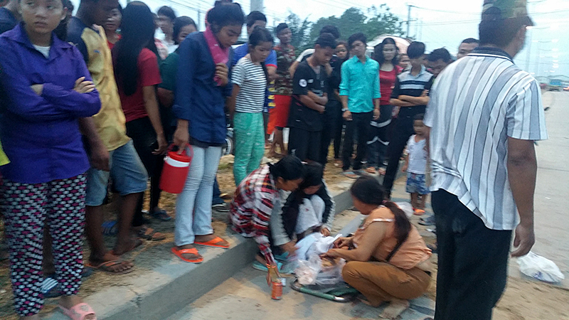 អ្នកឃើញហេតុការណ៍ការបានឲ្យដឹងថា នៅមុនពេលកើតហេតុគេឃើញជនរងគ្រោះទាំង២នាក់បានជិះម៉ូតូ១គ្រឿងម៉ាក់ហុងឌ្រីម សេ១២៥ ស៊េរីឆ្នាំ២០១៧ ពណ៌ខ្មៅ ពាក់ស្លាកលេខភ្នំពេញ1DF-5373ឌុបគ្នាក្នុងទិសដៅពីត្បូងទៅជើង លុះមកដល់ចំណុចកើតហេតុទំនងជាគេចនិងម៉ូតូរ៉ឺម៉កកងបីហើយក៏ត្រូវរថយន្តបង្កម៉ាកនីសាន់ ពណ៌ខៀវ ពាក់ស្លាកលេខភ្នំពេញ3A-3633 ដែលបើកមកពីក្រោយក្នុងល្បឿនចាប់ហ្វ្រាំងមិនទាន់ក៏បុកកិនបណ្តាលឲ្យដួលដេករណូករណែលកណ្តាលផ្លូវស្លាប់ភ្លាមៗយ៉ាងអាណោចអាធ័មតែម្តង។ ចំណែកម៉ូតូជនរងគ្រោះបានកៀបជាប់ពីក្រោមរថយន្តអូសប្រមាណជាង៣០០ម៉ែត្រទើបអស់ល្បឿនទៅមុខលែងរួចហើយត្រូវប្រជាពលរដ្ឋនាំគ្នាជួយចាប់អ្នកបើកបរបានវាយម្នាក់មួយដៃមួយជើងទើបប្រគល់ឲ្យសមត្ថកិច្ច។