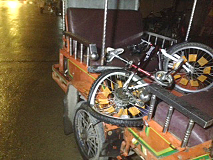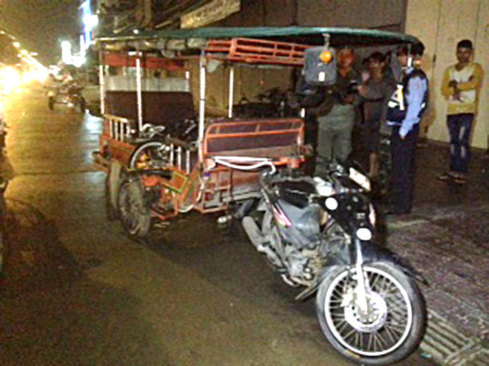 ភ្នំពេញ៖ បុរសម្នាក់បើកម៉ូតូរ៉ឺម៉ក១គ្រឿងរួមដំណើរពីក្រោយដោយស្ត្រីម្នាក់និងក្មេងប្រុសស្រីប្រាំនាក់ទៀតនិងបានដាក់កង់មួយគ្រឿងនៅលើផងនោះហើយបានបើកបរបញ្ច្រាសទិសដៅចរាចរណ៍ក៏ត្រូវម៉ូតូរ៉ឺម៉ក១គ្រឿងទៀតបើកមកបុកកង់ដែលដាក់នៅលើម៉ូតូរ៉ឺម៉កដែលបើកបញ្ច្រាសទិសបណ្តាលឲ្យលោតទៅប៉ះនិងក្មេងបុរសម្នាក់ស្លាប់បាត់បង់ជីវិតខណៈពេលបញ្ជូនទៅកាន់មន្ទីរពេទ្យ ។