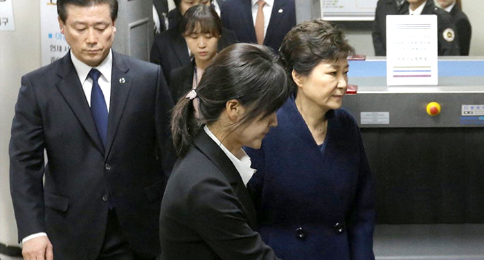 លោកស្រីវ័យ៦៥ឆ្នាំរូបនេះ ត្រូវបាននាំ ខ្លួនពីគេហដ្ឋាន របស់គាត់ក្នុងទីក្រុង សេអ៊ូល ទៅកាន់តុលាការ ក្រោយ ពីរដ្ឋ អាជ្ញា បានអនុញ្ញាតចេញដីកា ចាប់ខ្លួន លោកស្រី ។ លោកស្រីទទួលរង ការចោទ ប្រកាន់ថា បានឲ្យមិត្តភ័ក្តិជិតស្និទ្ធរបស់ គាត់គឺលោកស្រីChoi Soon Sil ជាអ្នកទទួលប្រាក់ដ៏ច្រើនសន្ធឹកសន្ធាប់ ពីសំណាក់ក្រុមហ៊ុនធំៗដូចជាSamsungជាដើម។ ទោះ បីជាយ៉ាងណាក្តីលោកស្រីPark ដែលត្រូវបានគេបណ្តេញចេញ ពីតំណែងកាលពី ដើមខែកន្លងមកនោះ បដិសេធលើការ ចោទប្រកាន់ចំពោះលោកស្រី ។