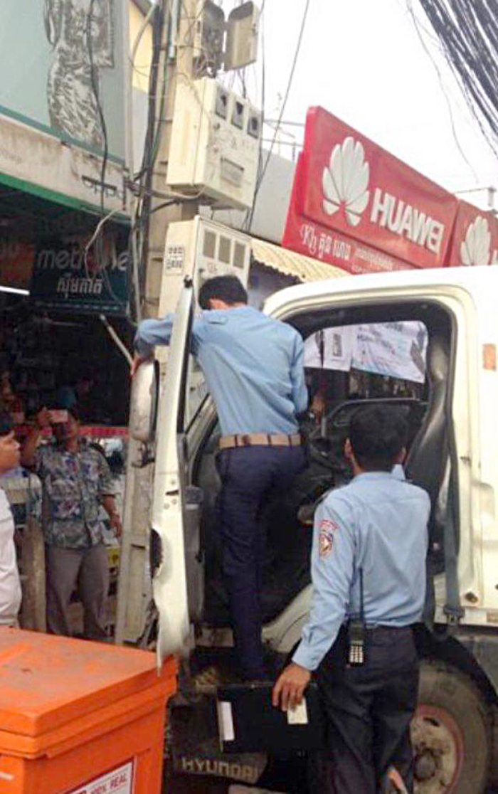 ភ្នំពេញ៖ រថយន្តកូរ៉េដឹកភេសជ្ជៈ១គ្រឿង ចំណុះ៥តោន ខណៈអ្នកបើកបរកំពុងបើកបត់ត្រឡប់ក្រោយមិនប្រយ័ត្នបានជ្រុលចង្កូតទៅបុកបង្គោលភ្លើងមួយដើមនៅមុខផ្ទះគេបង្កឲ្យមានការភ្ញាក់ផ្អើល កាលពីវេលាម៉ោង៧និង១០នាទីព្រឹក ថ្ងៃទី៣១ ខែមីនា ឆ្នាំ២០១៧ នៅត្រង់ចំណុចម្ដុំក្បែរស្តុបផ្សារដីហុយ ស្ថិតតាមបណ្ដោយផ្លូវ១៩៨៦ ភូមិភ្នំពេញថ្មី សង្កាត់ភ្នំពេញថ្មី ខណ្ឌសែនសុខ ។