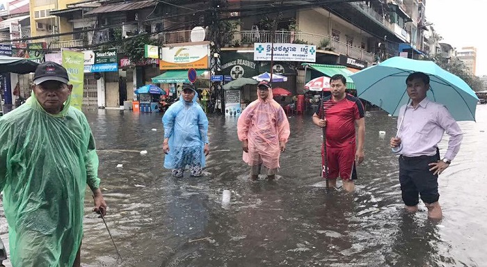 ភ្លៀងកក់ខែមួយមេធំលិចផ្លូវនានាក្នុងរាជធានី អាជ្ញាធរខណ្ឌដូនពេញចុះប្រមូលនិងរើសសំរាមចេញពីមាត់លូ