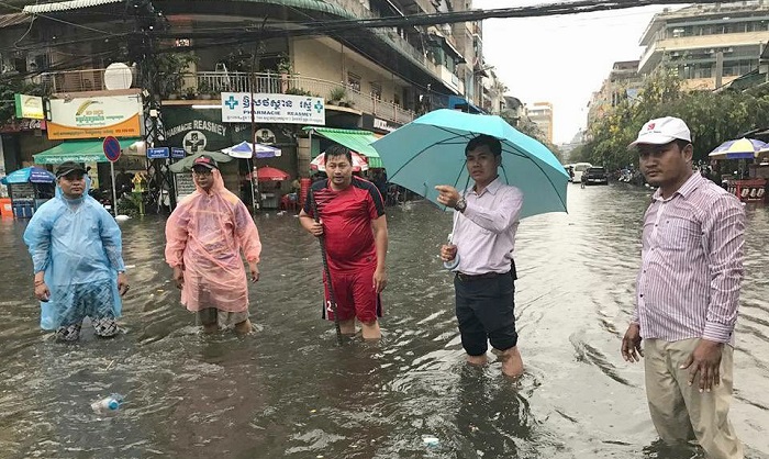 ភ្នំពេញ៖ បន្ទាប់ពីមានភ្លៀងធ្លាក់កក់ខែមួយមេធំរួចមក នៅឃើញថា តាមមណ្តាផ្លូវមួយចំនួននៅកណ្តាលរាជធានីភ្នំពេញ ព្រឹកថ្ងៃទី១ ខែមេសា ឆ្នាំ២០១៧ ឃើញថា មានការជនលិចទឹកស្ទើរគ្រប់កន្លែងបណ្តាលឲ្យលិចចូលផ្ទះប្រជាពលរដ្ឋក៏ដូចតាមទីផ្សារមួយចំនួន និងជាពិសេសនោះគឺនៅតំបន់ផ្សារកណ្តាលតែម្តង មានការជន់លិចយ៉ាងខ្លាំង។