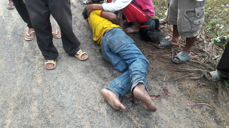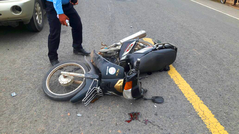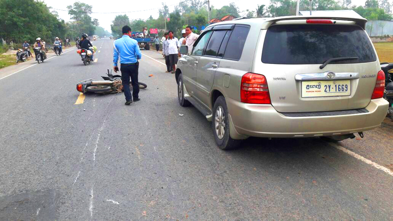 ខេត្តស្វាយរៀង៖ យុវជនម្នាក់បានរងរបួសធ្ងន់ បាក់ឆ្អឹងកំភួនជើងខាងស្តាំហូរឈាមសន្លប់ស្ដូកស្ដឹងនិងកន្លែងខណៈជិះម៉ូតូក្នុងល្បឿនលឿនមិនប្រកាន់ស្ដាំទៅបុកនិងរថយន្តហាយឡែនឌ័រ១គ្រឿងក្នុងទិសដៅបញ្ច្រាសគ្នា កាលពីវេលាម៉ោង៧ព្រឹកថ្ងៃទី១ ខែមេសា ឆ្នាំ២០១៧ នៅលើកំណាត់ផ្លូវជាតិលេខ១ ចន្លោះគីឡូម៉ែត្រ១៤១-១៤២ ស្ថិតក្នុងភូមិដើមពោធិ៍ ឃុំស្វាយតាយាន ស្រុកកំពង់រោទិ៍ ខេត្តស្វាយរៀង។