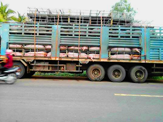 យ៉ាងណា សមត្ថកិច្ចបានឲ្យដឹងថា ប៉ុន្មានថ្ងៃមកនេះប្រជាពលរដ្ឋ ជាពិសេសមាគមអ្នកចិញ្ចឹមជ្រូកកម្ពុជា បានមានប្រតិកម្មខ្លាំង ក្នុងការដែលសមត្ថកិច្ចជំនាញអនុញ្ញាតឲ្យនាំជ្រូកចូលពីប្រទេសវៀតណាម នៅតាមបណ្តោយផ្លូវជាតិលេខ២ និង ផ្លូវជាតិលេខ១ ។ ជាក់ស្តែងកាលពីព្រឹកថ្ងៃទី៥ ខែឧសភា រថយន្តដឹកជ្រូកខាងលើ ត្រូវបានមន្ត្រីអគ្គនាយកដ្ឋានសុខភាពសត្វ និងផលិតកម្មសត្វ សហការជាមួយសមាគមអ្នកចិញ្ចឹមជ្រូក កម្ពុជា និងពេទ្យសត្វខេត្តកណ្តាល ឃាត់បាននៅចំណុចឃុំដីឥដ្ឋ ស្រុកកៀនស្វាយ ខេត្តកណ្តាល ដើម្បីពិនិត្យខ្លាចក្រែងសត្វជ្រូកទាំងនោះជំងឺ ក្រោយពិនិត្យរួចរកឃើញថា ការដឹកជញ្ជូនជ្រូកនេះ មានឯកសារមិនត្រឹមត្រូវឡើយ ក៏ឃាត់ទុកនឹងមានការបាញ់ទឹកឲ្យជ្រូក ខ្លាចងាប់។