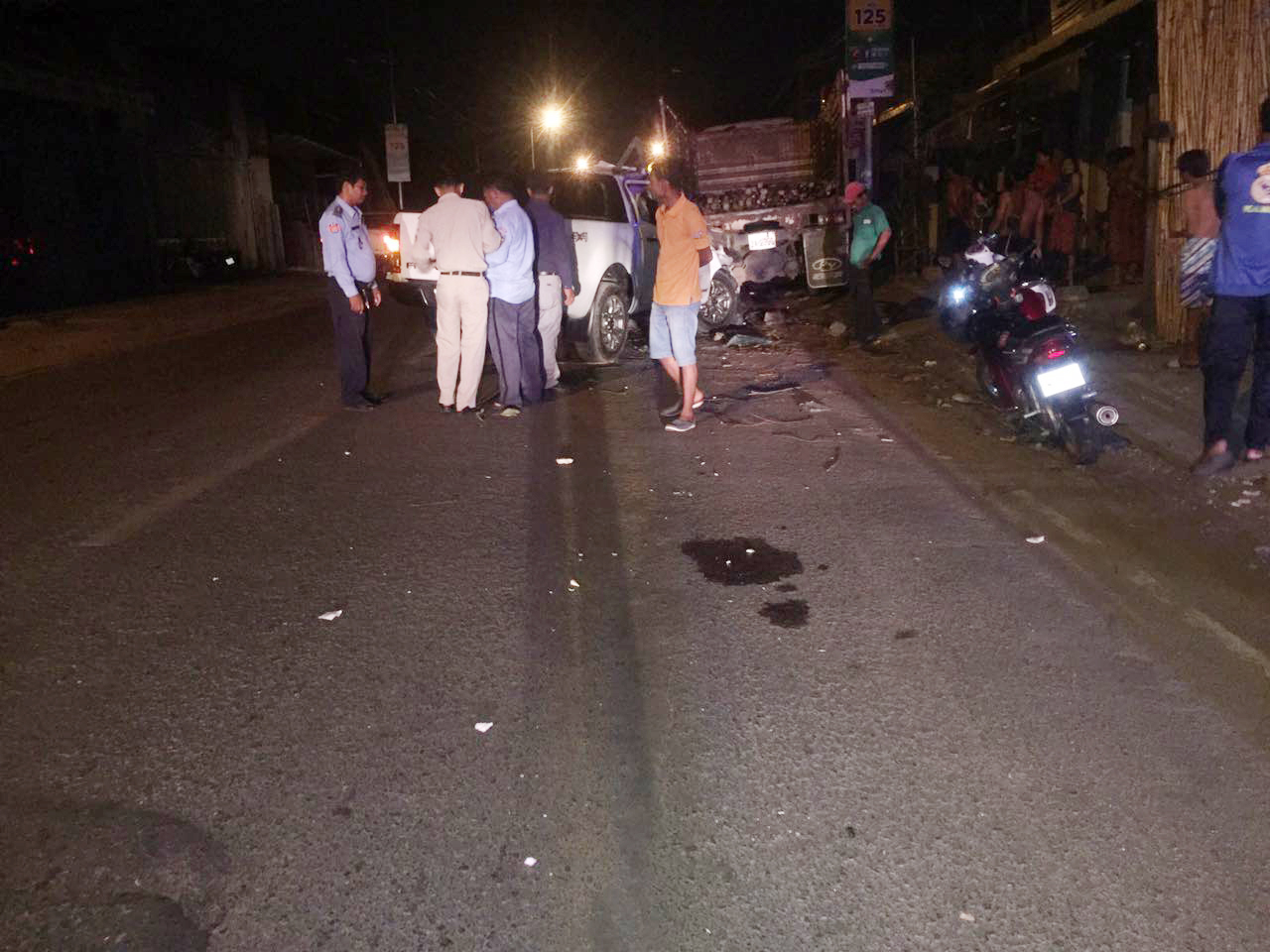 មន្ត្រីនគរបាលចរាចរណ៍ក្រុងតាខ្មៅបានបញ្ជាក់ថា ករណីគ្រោះថ្នាក់ចរាចរណ៍ខាងលើនេះ បង្កដោយភាគីរថយន្តដឹកកូនឈើ ដែលបាន ចតនៅលើចិញ្ចើមផ្លូវ ដោយមិនបានដាក់ស្លាកសញ្ញា និងគ្មានដាក់ភ្លើងបំភ្លឺ ។ ដោយឡែកអ្នកបើកបររថយន្តហ្វដ បើកបរក្នុងល្បឿនលឿន ។