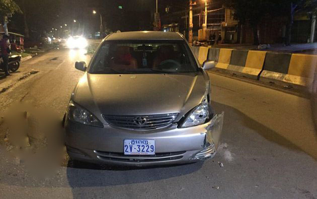 ភ្នំពេញ: រថយន្តម៉ាកកាមរីបាឡែន មួយគ្រឿងបើកបរដោយបុរសស្រវឹងស្រាម្នាក់បានបោះពួយយ៉ាងលឿន ទៅបុកក្បាលព្រួញចែកទ្រូងផ្លូវពេញទំហឹង បណ្តាលឲ្យរថយន្តបែកកង់ខាងឆ្វេង និងដាច់កាឡេកង់ខាងឆ្វេងនៃផ្នែកខាងមុខបង្កភ្ញាក់ផ្អើល កាលពីវេលាម៉ោង០០និង៤០នាទី រំលងអធ្រាត្រឈានចូលថ្ងៃទី១០ ខែឧសភា ឆ្នាំ២០១៧ ស្ថិតនៅក្នុងសង្កាត់ចាក់អង្រែក្រោម ខណ្ឌមានជ័យ ។