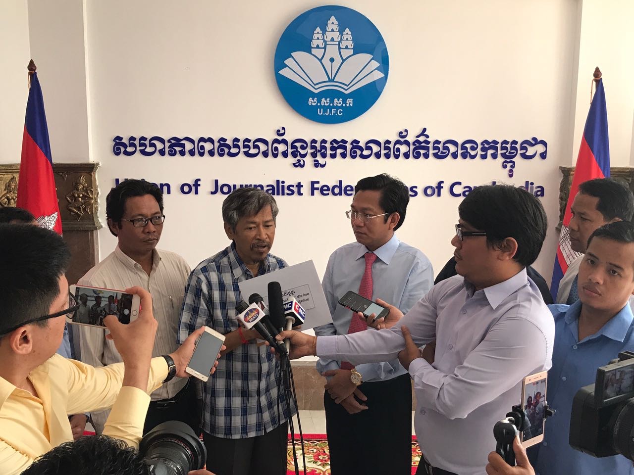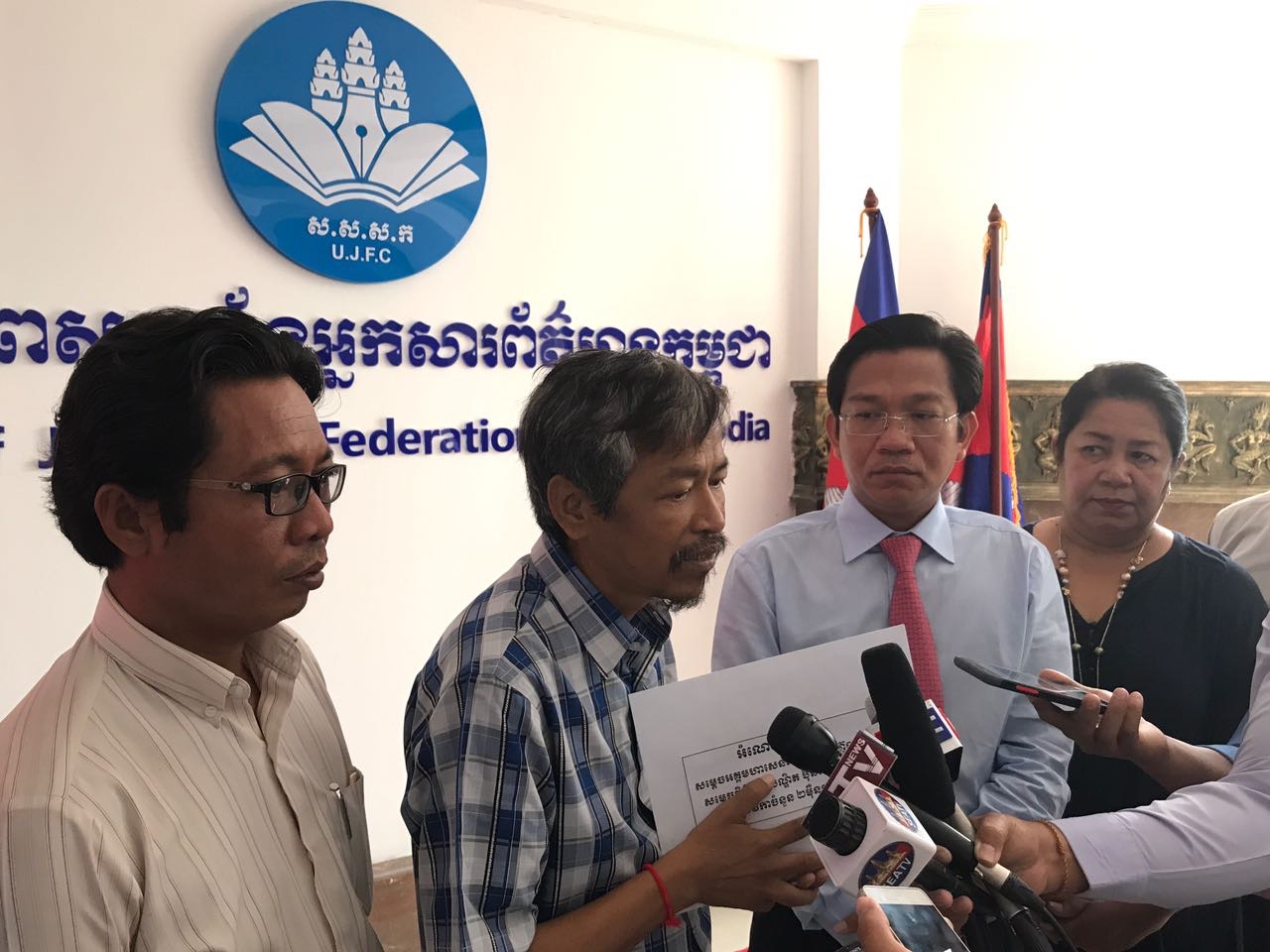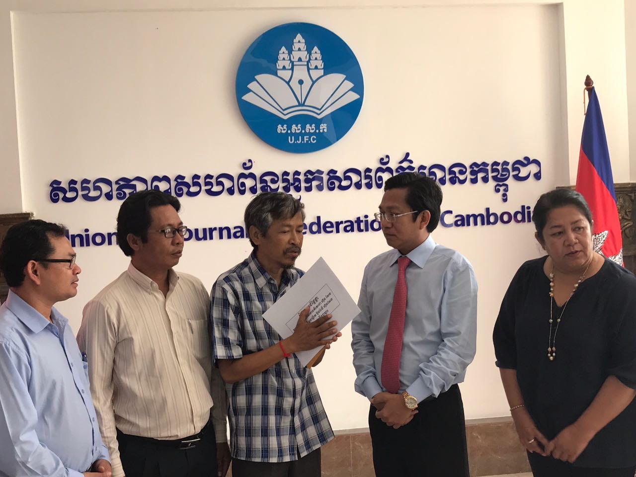 ភ្នំពេញ៖ នៅព្រឹកថ្ងៃទី១០ ខែឧសភា ឆ្នាំ២០១៧នេះ លោក ហ៊ុយ វណ្ណះ ប្រធានសហភាពសហព័ន្ធអ្នកសារព័ត៌មានកម្ពុជា (ស.ស.ស.ក) បានធ្វើពិធីប្រគល់ ថវិការបស់សម្តេចតេជោ ហ៊ុន សែន និង សម្តេចកិត្តិព្រឹទ្ធបណ្ឌិត ចំនួន២ម៉ឺនដុល្លារ ជូនអ្នកសារព័ត៌មាន ១រូបគឺលោក សាំង សុឥន្ទរិទ្ធ អតីតអ្នកកាសែត The Cambodia Daily ធ្វើនៅស្នាក់ការកណ្តាល ស.ស.ស.ក ។
