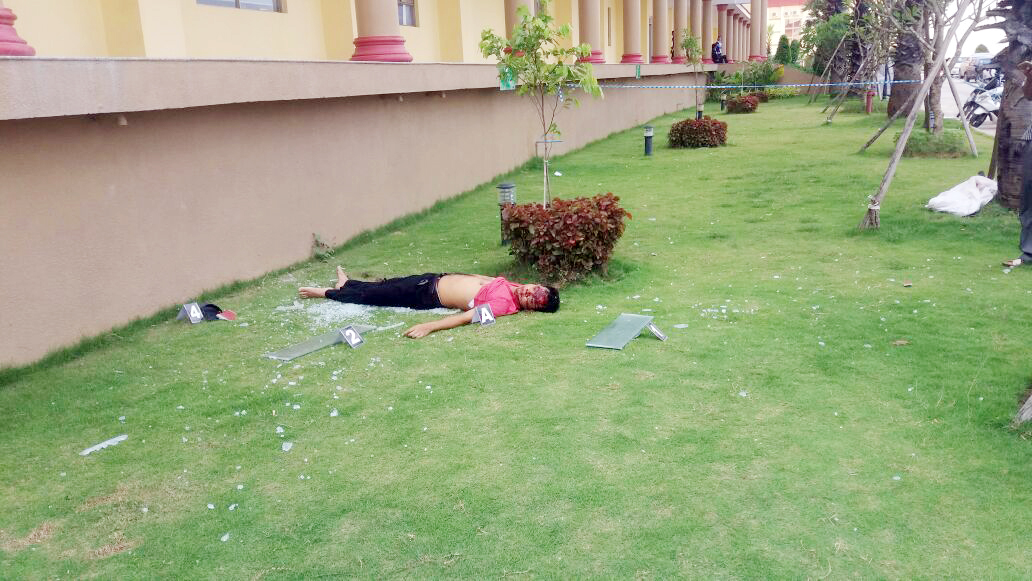 ប្រភពព័ត៌មានពីបុរសឈ្មោះ ហង់ ម៉ៃ ជាសន្តិសុខសាកលវិទ្យាល័យកម្ពុជាបាន ប្រាប់សមត្ថកិច្ចឲ្យដឹងថា មុនពេលកើត ហេតុគេឃើញបុរសខាងលើបានឡើងទៅ ជាន់ទី៦ អគារសាកលវិទ្យាល័យកម្ពុជា ដោយមិនឲ្យក្រុមសន្តិសុខបានឃើញឡើយ។ មួយសន្ទុះក្រោយមកស្រាប់តែ បុរសនេះវាយកញ្ចក់បង្អួចបែកខ្ចាយរួច ឡើងទៅអង្គុយលើបង្អួចដោយមិនភ័យខ្លាច ធ្លាក់ពីលើអគារនោះឡើយ។ ពេលឃើញ ដូច្នេះសន្តិសុខរូបនេះបានស្រែកពីក្រោម ប្រាប់ជនរងគ្រោះកុំឲ្យអង្គុយលើបង្អួច បែបនេះ ព្រោះខ្លាចគ្រោះថ្នាក់ ប៉ុន្តែមិនបាន ប៉ុន្មានផងស្រាប់តែបុរសនេះលោតពីលើ បង្អួចមកដល់ដីបែកក្បាលស្លាប់យ៉ាង អាណោចអាធ័មតែម្តង។