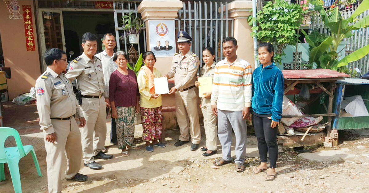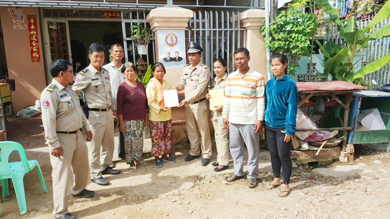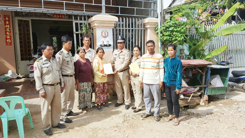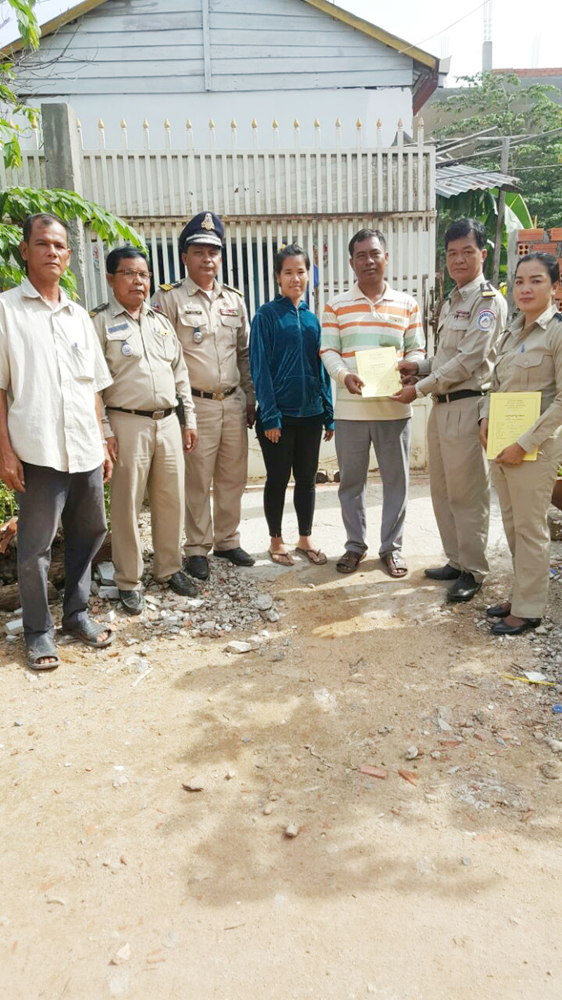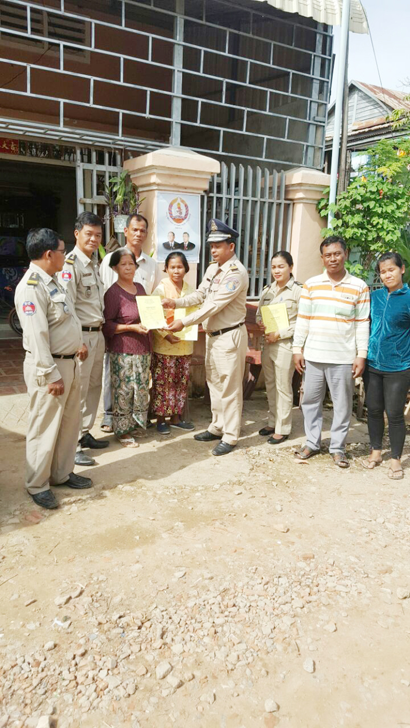អធិការរដ្ឋាននគរបាលខណ្ឌសែនសុខ បន្តចុះចែកសៀវភៅស្នាក់នៅ ជូនដល់ប្រជាពលរដ្ឋចំនួន៧គ្រួសារនៅក្នុងសង្កាត់ឃ្មួញ