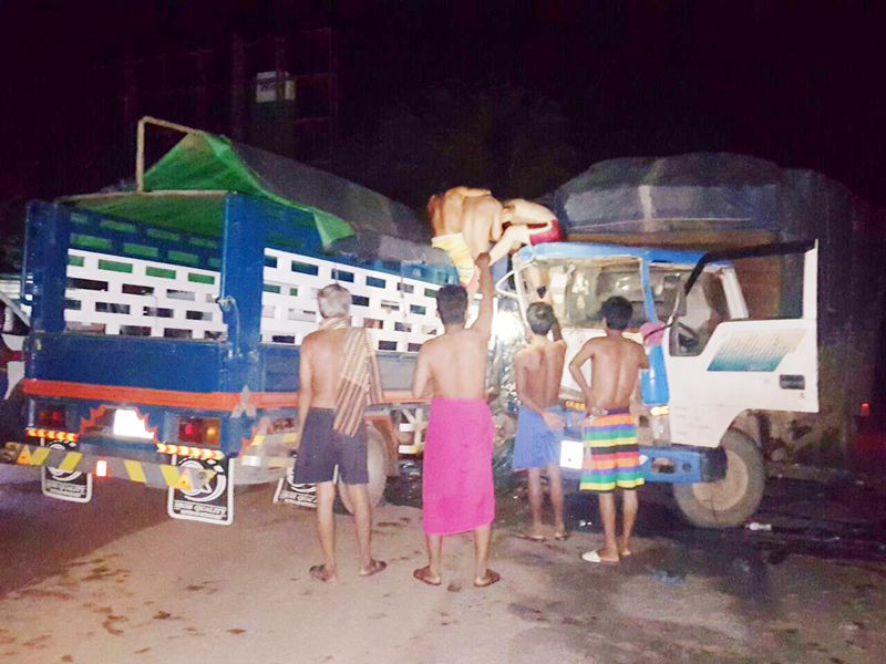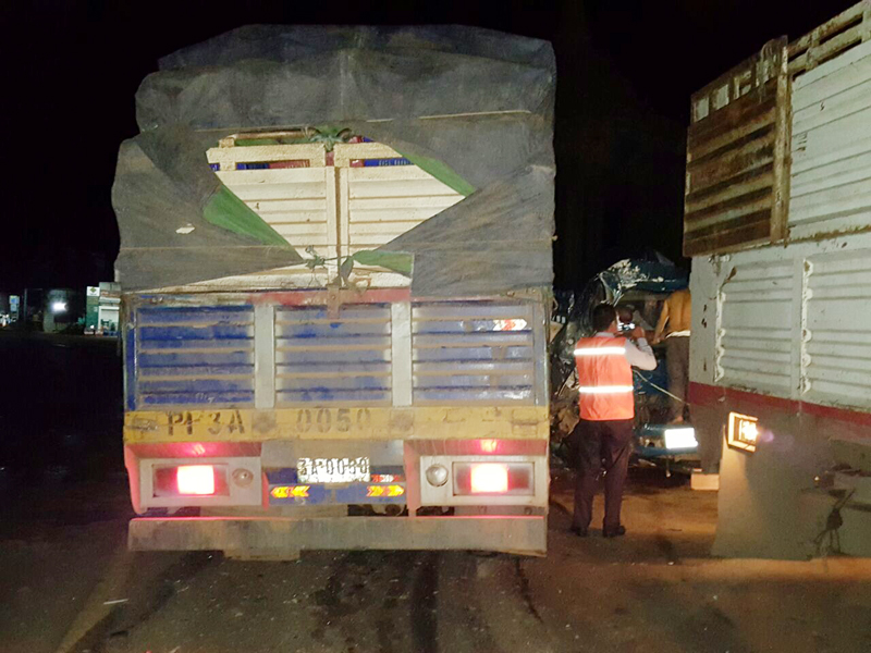 ខេត្តកណ្តាល ៖ រថយន្តធុនធំម៉ាកហ៊ីយ៉ាន់ដាយពីរគ្រឿងបើកបោះពួយបុកគ្នាពេញមួយទំហឹងនៅលើផ្លូវជាតិលេខ៥ បណ្តាលឲ្យរងការខូចខាតយ៉ាងដំណំ តែសំណាងល្អគ្មានអ្នកស្លាប់ បានត្រឹមតែធ្វើមនុស្ស២នាក់រងរបួសស្រាល។ ករណីគ្រោះថ្នាក់ចរាចរណ៍នេះបានកើតឡើង កាលពីវេលាម៉ោង២៣និង៤០នាទី ថ្ងៃទី២៤ ខែឧសភា ឆ្នាំ២០១៧ ត្រង់ចំណុចផ្លូវកោងរូបសំណាក់សេះស ស្ថិតក្នុងភូមិសង្វរ ឃុំកំពង់ហ្លួង ស្រុកពញាឮ ខេត្តកណ្តាល ។