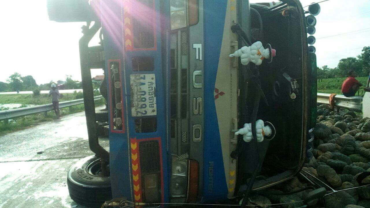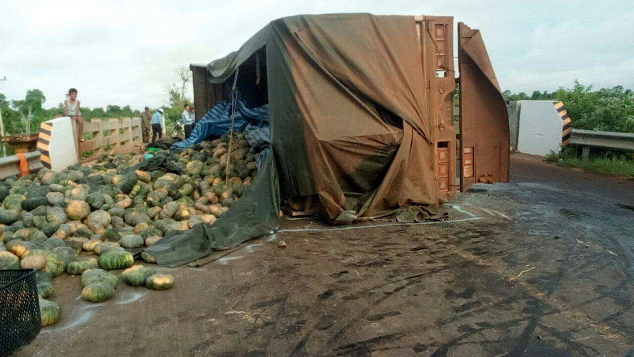ខេត្តឧត្តរមានជ័យ ៖ រថយន្តយីឌុបមួយគ្រឿង ពណ៌ខ្មៅ ក្បាលខៀវ ពាក់ស្លាកលេខ កំពង់ចាម3A-0892 ខ្វះការប្រុងប្រយ័ត្នក្នុងល្បឿនលឿន បានជ្រុលទៅបុកបង្កាន់ដៃស្ពានក្រឡាប់ផ្ងារជើងធ្លាយចេញសិទ្ធតែផ្លែល្ពៅ បណ្ដាលឲ្យអ្នកបើកបរ និងកម្មកររងរបួសធ្ងន់ស្រាលចំនួន៧នាក់។ ករណីគ្រោះថ្នាក់នេះ កើតឡើងនៅវេលាម៉ោងជាង៣ទាបភ្លឺថ្ងៃ ទី២៥ ខែឧសភា ឆ្នាំ២០១៧ នេះ ត្រង់ចំណុចស្ពានកណ្តែក ស្ថិតក្នុងភូមិកណ្តែក សង្កាត់សំរោង ក្រុងសំរោង ។