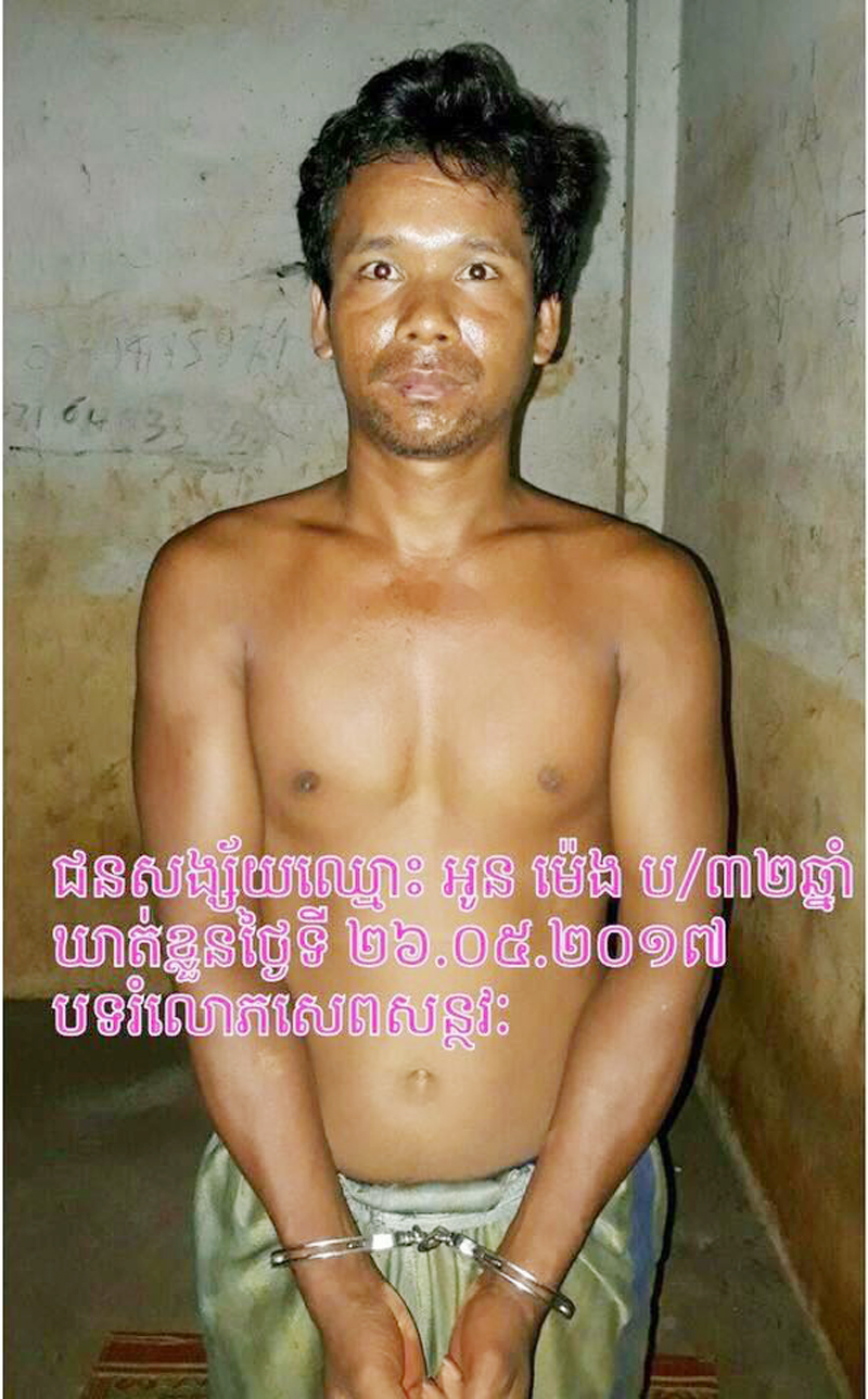 ខេត្តត្បូងឃ្មុំ ៖ បុរសម្នាក់ត្រូវបាននគរបាលប៉ុស្តិ៍រដ្ឋបាលមេមងធ្វើការឃាត់ខ្លួន ពាក់ព័ន្ធនឹងករណីចាប់រំលោភលើ នារីវ័យ២០ឆ្នាំ ដែលមានសតិមិនគ្រប់បានសម្រេច នៅចំណុចចម្ការកៅស៊ូឈ្មោះ គាំ ផល្លា ស្ថិតនៅភូមិសំបូរ ឃុំមេមង ស្រុកមេមត់ ខេត្តត្បូងឃ្មុំ កាលពីវេលាម៉ោង៨ និង១០នាទី ថ្ងៃទី២៦ ខែឧសភា ឆ្នាំ ២០១៧ ។