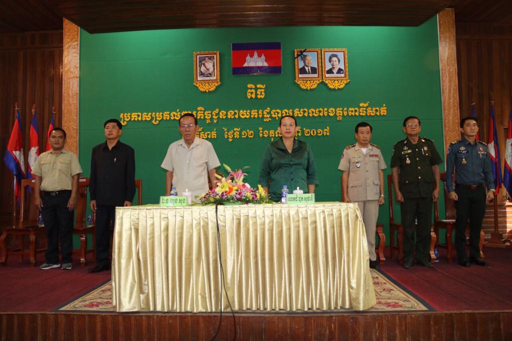 ខេត្តពោធិ៍សាត់ ៖ នាព្រឹក ថ្ងៃទី១២ ខែតុលា ឆ្នាំ២០១៧នេះ នៅសាលប្រជុំសាលាខេត្តពោធិ៍សាត់ ដែលស្ថិតក្នុងភូមិពាលញែក២ សង្កាត់ផ្ទះព្រៃ ក្រុង-ខេត្តពោធិ៍សាត់ ឯកឧត្តម ឈុន សុង សមាជិកក្រុមប្រឹក្សាខេត្តពោធិសាត់ ជាតំណាងឯកឧត្តម ខូយ សុខា ប្រធានក្រុមប្រឹក្សាខេត្តពោធិ៍សាត់ និងលោកស្រី ជុក សុផានី អភិបាល រងនៃគណៈអភិបាលខេត្តពោធិសាត់ ជាតំណាងឯកឧត្តម បណ្ឌិត ម៉ៅ ធនិន អភិបាលនៃគណៈអភិបាលខេត្តពោធិ៍សាត់ បានអញ្ជើញជាអធិបតីភាពដ៍ខ្ពង់ខ្ពស់ ក្នុងពិធីប្រគល់ភារកិច្ចនាយករដ្ឋបាលថ្មីខេត្តពោធិ៍ សាត់ ដោយអញ្ជើយចូលរួមពីសំណាក់មន្រ្តីរាជការតាមដាមន្ទីរនានាជុំវិញខេត្តពោធិ៍សាត់យ៉ាងច្រើនកុះកផងដែរ។