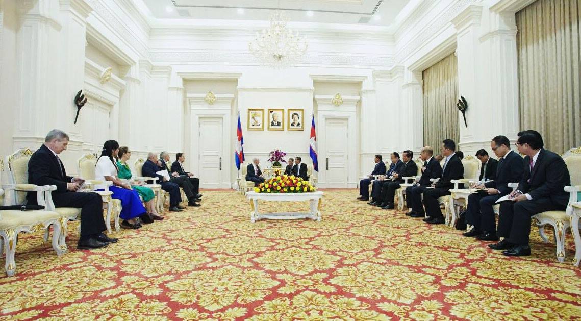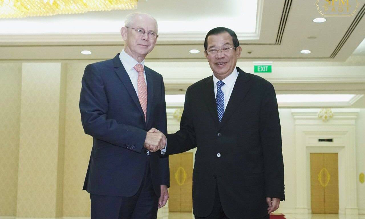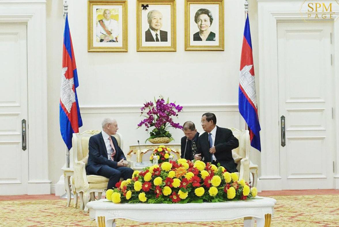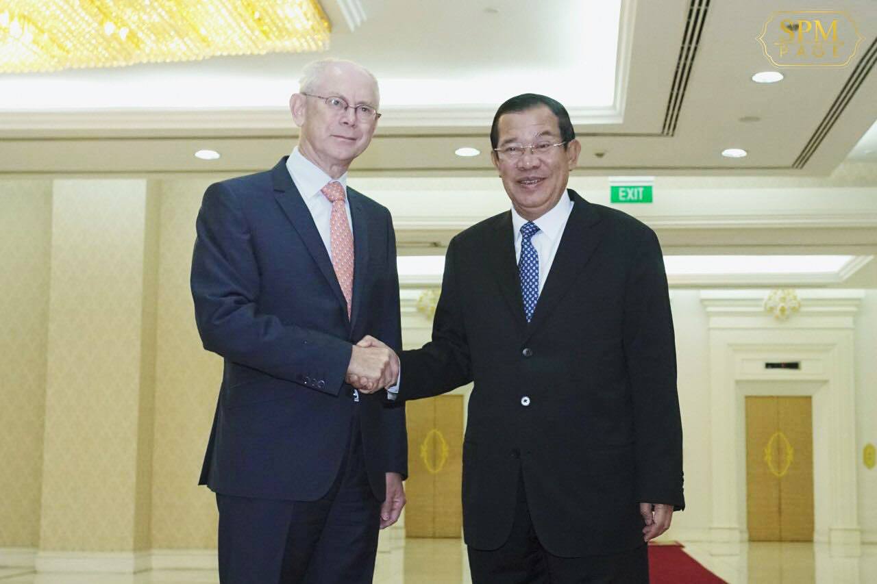 ភ្នំពេញ ៖ នៅវិមានសន្តិភាព នាព្រឹកថ្ងៃទី១៩ ខែតុលា ឆ្នាំ២០១៧នេះ សម្តេចអគ្គមហាសេនា បតីតេជោ ហ៊ុន សែន នាយករដ្ឋមន្ត្រី នៃព្រះរាជាណាចក្រកម្ពុជា បានអញ្ជើញទទួលជួបពិភាក្សាការងារជាមួយលោក Herman Van Rompuy អតីតប្រធានគណៈកម្មការសហភាពអឺរ៉ុប និងជាឯកអគ្គរាជទូតសុឆន្ទៈ របស់អង្គការ Fermish Association for Development Cooperation and technical Assistance។