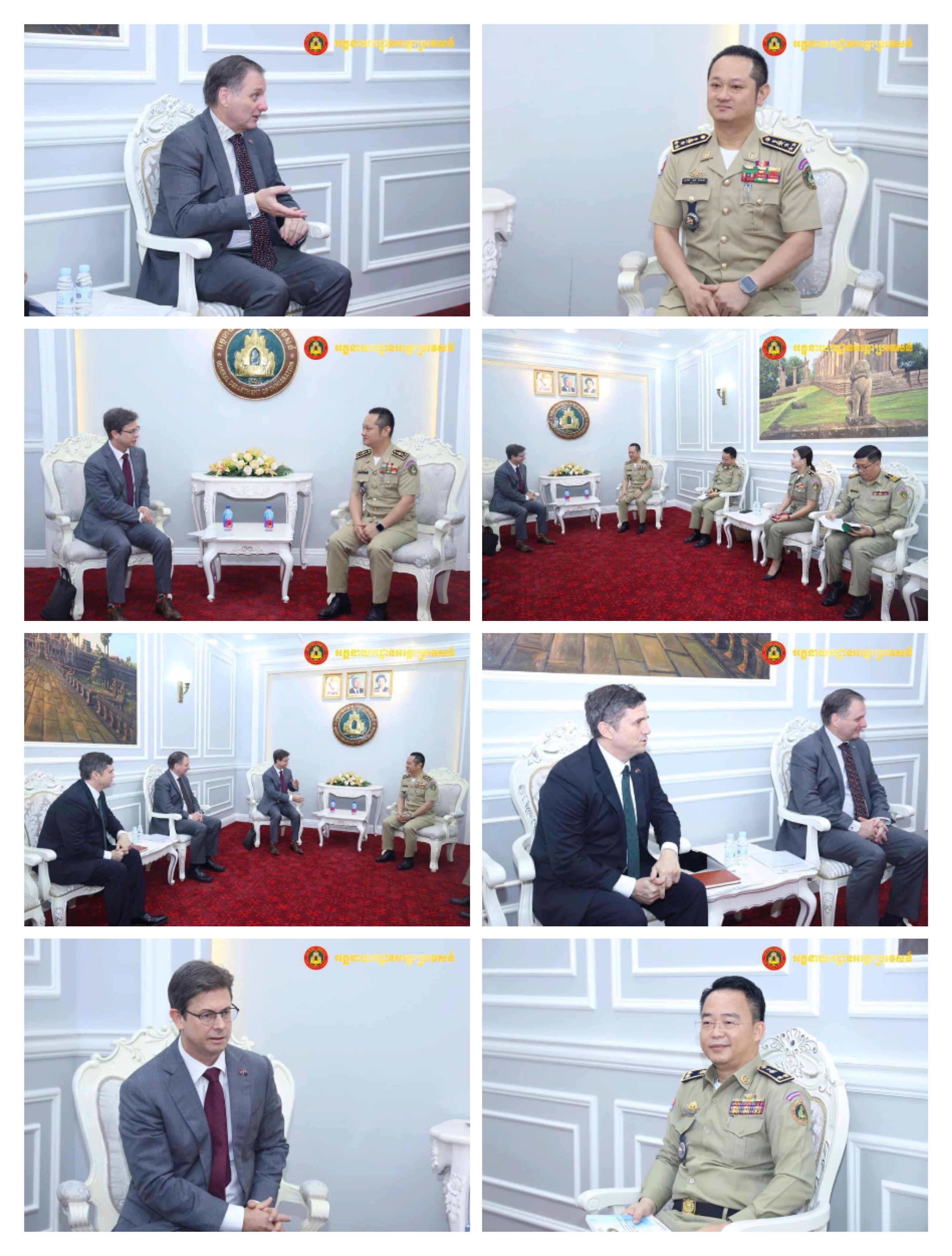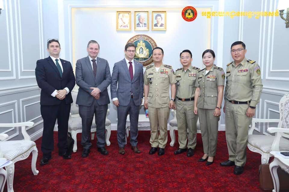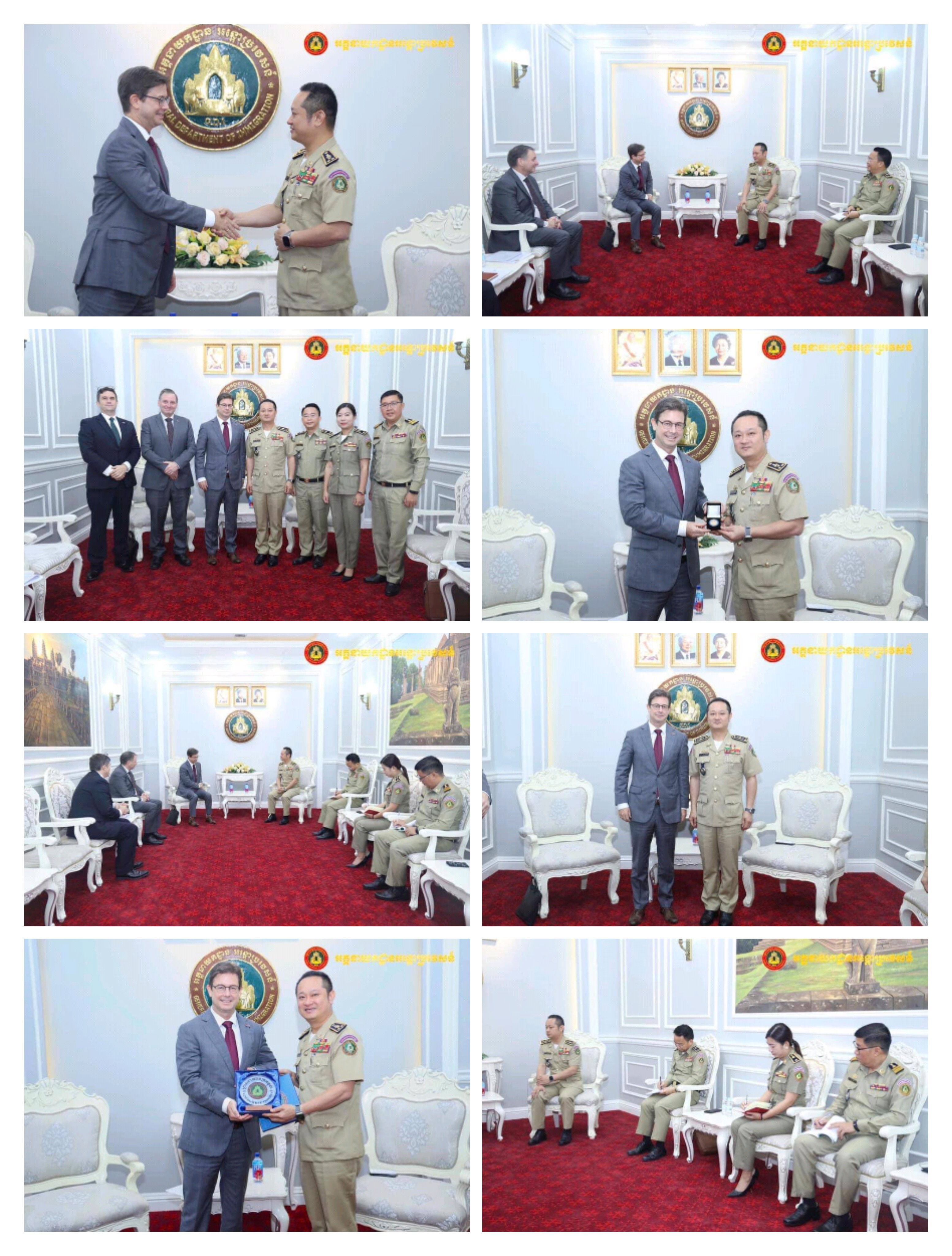 ភ្នំពេញ ៖ នាព្រឹកថ្ងៃអង្គារ ទី៧ ខែវិច្ឆិកា ឆ្នាំ២០២៣នេះ ឧត្តមសេនីយ៍ឯក សុខ វាសនា អគ្គនាយក នៃអគ្គនាយកដ្ឋានអន្តោប្រវេសន៍ ទទួលស្វាគមន៍ លោក ចាស្ទីន វ៉ាយអេត (Justin Whyatt) ឯកអគ្គរដ្ឋទូតវិសាមញ្ញាម និងពេញសមត្ថភាពអូស្រ្តាលី ប្រចាំកម្ពុជា ព្រមទាំងគណ:ប្រតិភូចូលជួបសម្ដែងការគួរសម និងពិភាក្សាការងារ នៅអគ្គនាយកដ្ឋានអន្តោប្រវេសន៍។