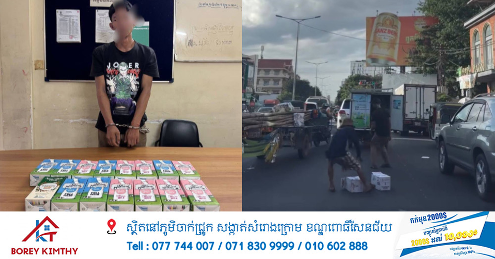 ភ្នំពេញ៖ នៅថ្ងៃទី៣១ ខែឧសភា ឆ្នាំ២០២៥ វេលាម៉ោងប្រហែល១៧:២០នាទី យោងតាម Account Facebook ឈ្មោះ PAGE KHMER KNOWLEDEGE បានបង្ហោះមានខ្លឹមសារថា៖ មានករណីជនសង្ស័យចំនួន០២នាក់ភេទប្រុស បានធ្វើសកម្មភាពលួច (បើកទ្វារកន្ទុយរ៉ឺម៉ក់លួចយកទឹកគោដោះចំនួន០២កេស) ស្ថិតនៅលើដងផ្លូវម៉ៅសេទុង ក្រុមទី៩ ភូមិ២ សង្កាត់ផ្សារដើមគរ ខណ្ឌទួលគោក រាជធានីភ្នំពេញ កាលពីថ្ងៃទី៣១ ខែឧសភា ឆ្នាំ២០២៥ វេលាម៉ោងប្រហែល១៦:៤៦នាទី ។