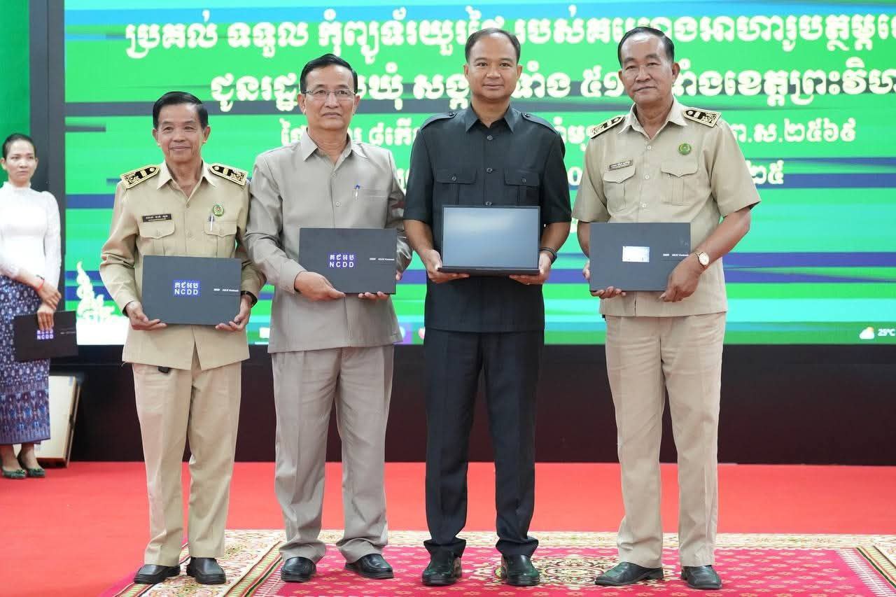 ខេត្តព្រះវិហារ : ពិធីប្រគល់ ទទួល កុំព្យូទ័រយួរដៃ របស់គម្រោងអាហារូបត្ថម្ភនៅកម្ពុជា សម្រាប់បម្រើការងារ ផ្តល់សេវាតាមប្រព័ន្ធឌីជីថល ជូនរដ្ឋបាលឃុំ សង្កាត់ទាំង ៥១ ទូទាំងខេត្តព្រះវិហារ ក្រោមអធិបតីភាព លោក គីម រិទ្ធី អភិបាលខេត្តព្រះវិហារ នៅថ្ងៃទី៣០ ខែកញ្ញា ឆ្នាំ២០២៥។
