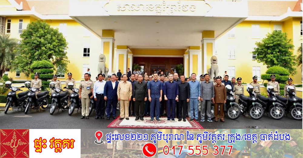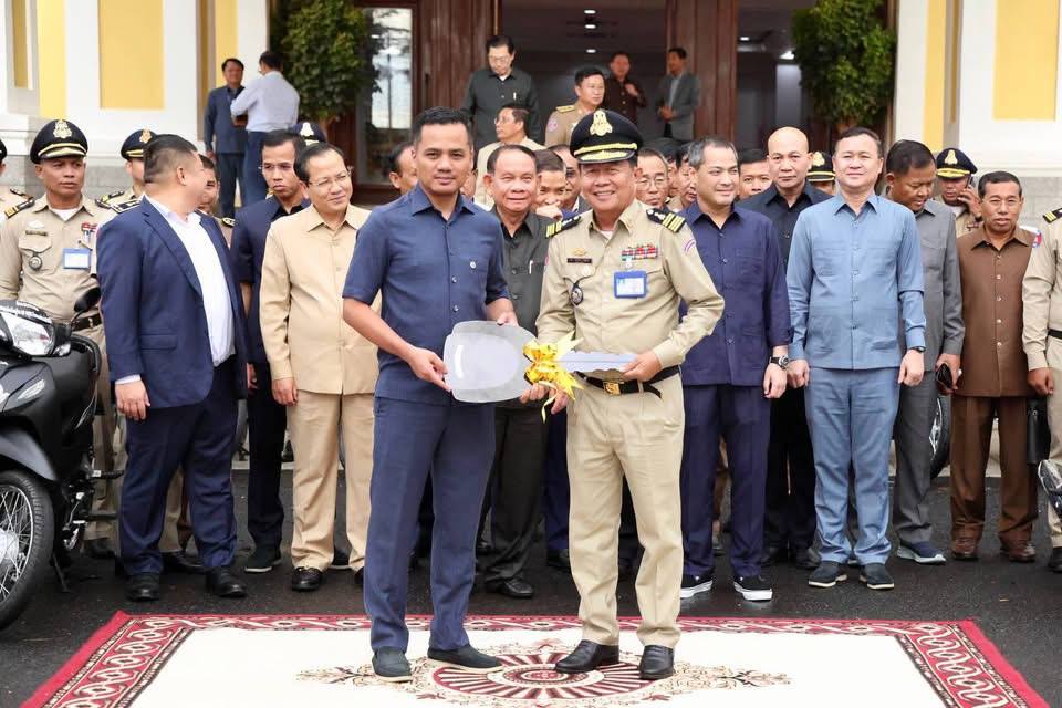 ភ្នំពេញ ៖ លោកអភិសន្តិបណ្ឌិត ស សុខា ឧបនាយករដ្ឋមន្ត្រី រដ្ឋមន្ត្រីក្រសួងមហាផ្ទៃ និងជាប្រធានក្រុមការងាររាជរដ្ឋាភិបាលចុះមូលដ្ឋានខេត្តព្រៃវែង បានប្រគល់ម៉ូតូ ចំនួន ២២គ្រឿង ជំហានទី២ ដល់ប៉ុស្តិ៍នគរបាលរដ្ឋបាលឃុំ នៃស្រុកពាមជរ ស្រុកពាមរក៍ និងស្រុកកំចាយមារ ខេត្តព្រៃវែង សម្រាប់ជួយសម្រួលដល់ការធ្វើដំណើរបំពេញការងាររបស់មន្ត្រី នៃប៉ុស្តិ៍នគរបាលរដ្ឋបាលឃុំនីមួយៗ។