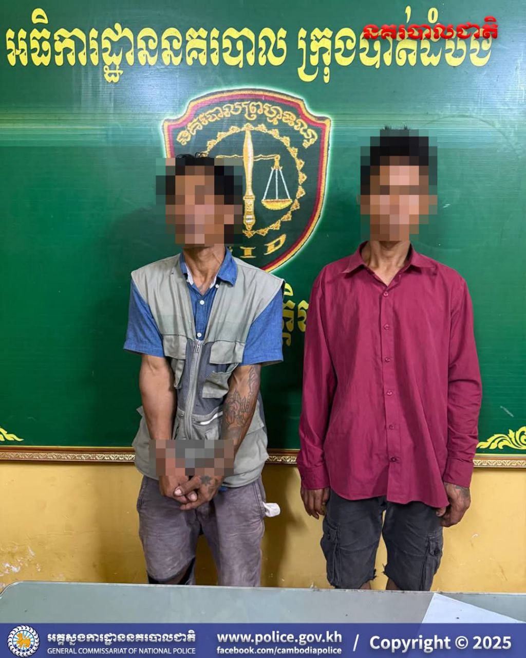 ក្រោយពីទទួលបណ្តឹងពីប្រជាពលរដ្ឋ កម្លាំងផ្នែកយុត្តិធម៌ រួមជាមួយកម្លាំងប៉ុស្ដិ៍នគរបាលរដ្ឋបាលអូរចារ នៃអធិការដ្ឋាននគរបាលក្រុងបាត់ដំបង ដឹកនាំដោយលោកវរសេនីយ៍ឯក ពេជ្រ សារ៉ែន អធិការនគរបាលក្រុងបាត់ដំបង បានចុះស៊ើបអង្កេតឃាត់ខ្លួនជនសង្ស័យចំនួន ០២នាក់ ១-ឈ្មោះ ហេង ជាតិ ភេទប្រុស អាយុ៣៥ឆ្នាំ មានទីលំនៅភូមិខ្នាចរមាស ឃុំខ្នាចរមាស ស្រុកបវេល ខេត្តបាត់ដំបង និង២-ឈ្មោះ តូច វុធ ហៅខ្វេ ភេទប្រុស អាយុ៤២ឆ្នាំ មានទីលំនៅភូមិកាប់គោថ្មី សង្កាត់អូរចារ ក្រុងបាត់ដំបង ខេត្តបាត់ដំបង នាំយកមកសាកសួរនៅអធិការដ្ឋាននគរបាលក្រុងបាត់ដំបង។