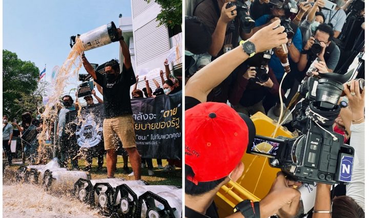 ក្រុមអ្នកលក់ស្រា និងម្ចាស់បារនៅទីក្រុងបាងកក ប្រមូលផ្ដុំគ្នានៅមុខក្រសួងសុខាភិបាល រួចចាក់ស្រាចោលព្រោះតែច្បាប់រឹតត្បឹតការលក់នៅក្នុងសម័យកូវីដ-១៩