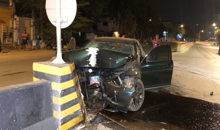 រថយន្តLexus GS300 ពាក់ស្លាកលេខ ខេមរភូមិន្ទ08 2.3480 បុករបាំងថ្មពុះចែកទ្រូងផ្លូវរងការខូចខាតយ៉ាងដំណំ