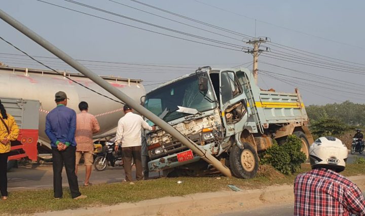 ភ្នំពេញ៖ រថយន្តបែនដឹកដី១គ្រឿងខណៈកំពុងបើកបរក្នុងល្បឿនលឿនបានវាក់ជាមួយរថយន្តលាយបេតុង១គ្រឿងទៀតនៅខាងមុខក៏ខំបើកគេចរហូតជ្រុលទៅបុកសួនច្បារពុះចែកទ្រូងផ្លូវនិងបុកបង្គោលភ្លើងបំភ្លឺផ្លូវបាក់អស់១ដើមរងការខូចខាត។ ហេតុការណ៍នេះបានកើតឡើងកាលពីវេលាម៉ោង៧និង៤៥នាទីព្រឹកថ្ងៃទី២៨ ខែកុម្ភៈ ឆ្នាំ២០២១ នៅលើមហាវិថីឈ្នះ=ឈ្នះ ត្រង់ចំណុចមុខក្រុមហ៊ុនលាយបេតុង ក្នុងភូមិសំរោង សង្កាត់សំរោងក្រោម ខណ្ឌពោធិ៍សែន។ … អានបន្ថែម រថយន្តបែនដឹកដីបើកគេចពីរថយន្តលាយបេតុងជ្រុលទៅបុកសួនច្បារពុះចែកទ្រូងផ្លូវ និងបុកបាក់បង្គោលភ្លើងបំភ្លឺផ្លូវ១ដើម
