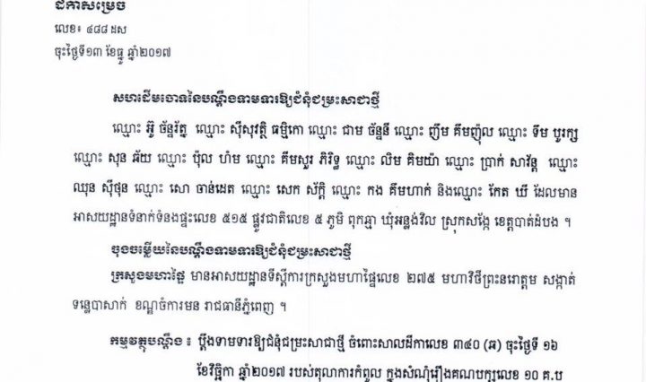 តុលាការកំពូល មិនជំនុំជម្រះសាជាថ្មីទេ សំណុំរឿងរំលាយគណបក្សសង្គ្រោះជាតិ