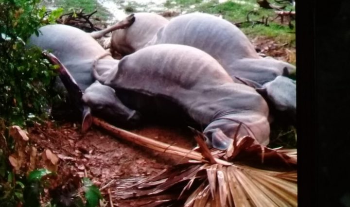 រថយន្តដឹកហ្គាស ទំនងអ្នកបើកងងុយដេក បុកខឿនទ្រូងពុះចែកផ្លូវរូបគោ៤ ក្រុងស្វាយរៀង