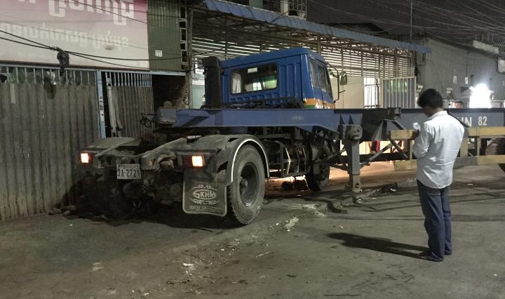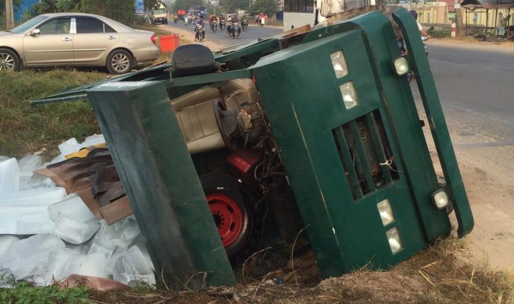 រថយន្តកង់តឺន័របុកគោយន្តដឹកទឹកកកពីក្រោយ រងរបួសធ្ងន់ម្នាក់