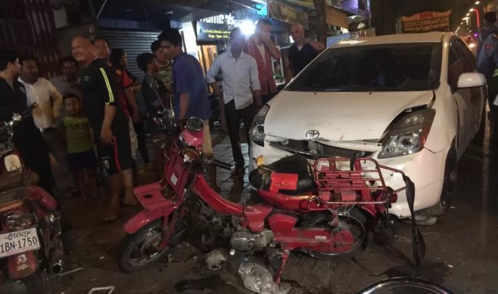 ភ្នំពេញ៖ នារីម្នាក់បើករថយន្ដម៉ាកព្រូសមួយគ្រឿងរវល់អោនរើសទូរស័ព្វរេចង្កូតបុករៈរឺម៉កម៉ូតូកង់បីមួយគ្រឿង ម៉ូតូ៣គ្រឿងនិងរថយន្ដមួយគ្រឿងទៀតបង្កការភ្ញាក់ផ្អើលដល់ប្រជាពលរដ្ឋតែសំណាងល្អមិនបណ្ដាលអោយមានអ្នករងរបួស។ . ករណីនេះដែរបានកើតឡើងនៅវេលាម៉ោង២០និង៤៥នាទី ថ្ងៃទី១១ ខែមករា ឆ្នាំ២០១៩នៅចំណុចផ្លូវព្រះសុីសុវត្តិកែងផ្លូវលេខ១០២ ក្នុងសង្កាត់វត្តភ្នំ ខណ្ឌដូនពេញ រាជធានីភ្នំពេញ។ . រថយន្ដបង្កម៉ាក តូយ៉ូតាព្រូសពណ៍ស ពាក់ស្លាកលេខ ភ្នំពេញ2AE-5854 បើកបរដោយនារីម្នាក់។ ចំណែកសម្ភារះដែលខូចខាតរួមមាន ម៉ូតូ៣គ្រឿង រឺម៉កម៉ូតូកង់បីមួយគ្រឿងនិងរថយន្ដម៉ាកឡិចសុីRX300មួយគ្រឿង។ . ព័ត៌មានពីកន្លែងកើតហេតុបានអោយដឹងថា មុនពេលកើតហេតុ គេឃើញម៉ូតូ និងរឺម៉កកង់បីនិងរថយន្ដដែលត្រូវរថយន្ដបង្កបុកនោះគឺឈប់នៅឯបចិញ្ចើមផ្លូវ។ លុះដល់ពេលកើតហេតុស្រាប់តែមានរថយន្ដបង្កបើកបរដោយនារីម្នាក់បើកបុករៈបណ្ដាលអោយខូចខាតតែម្ដង តែមិនបណ្ដាលអោយមានអ្នករងរបួសនោះទេ។ បើតាមនារីដែលបើករថយន្ដបង្កបានអោយដឹងថាដោយសារតែរូបគាត់បានអោនរើសទូរស័ព្វក្នុងរថយន្ដទើបធ្វើអោយរេចង្កូតបុករៈតែម្ដងទៅ។ . ក្រោយពីតហេតុ ម្ចាស់រថយន្ដបានព្យាយាមធ្វើការសម្របសម្រួលជាមួយភាគីទាំងអស់ដោយព្រមសងថ្លៃខូចខាតទៅអោយម្ចាស់រឺម៉កម៉ូតូកង់បីចំនួន៣០០ដូល្លារ និងម៉ូតូមួយគ្រឿងទៀតចំនួន១០០ដូល្លារដើម្បីបញ្ចប់រឿង។ ចំណែកម៉ូតូពីរគ្រឿងនិងរថយន្ដមួយគ្រឿងទៀតដែលម្ចាស់ទាមទារថ្លៃខូចខាតថ្លៃពេកទើបដោះស្រាយគ្នាមិនត្រូវក៏សម្រេចអោយកម្លាំងជំនាញធ្វើការវាស់វែងយកទៅរក្សាទុកនៅការិយាល័យចរាចរណ៍រាជធានីភ្នំពេញដើម្បីធ្វើការដោះស្រាយនៅពេលក្រោយ៕ សុខាសែនជ័យ អានបន្ថែម នារីម្នាក់បើករថយន្ដបុករៈម៉ូតូនិងរថយន្ដជាច្រើនគ្រឿង