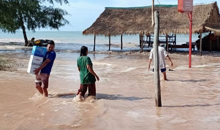 ព្រឹកថ្ងៃសៅរ៍នេះ អាជ្ញាធរខេត្តកោះកុងជម្លៀសក្រុមអាជីវករទៅរកទីទួលមានសុវត្ថិភាព ដោយសារទឹកសមុទ្រ ជន់ជោរ និងមានខ្យល់បក់បោកខ្លាំង បង្កើតជារលកធំៗ វាយប្រហារតូបលក់ដូរ និងលំនៅដ្ឋាន