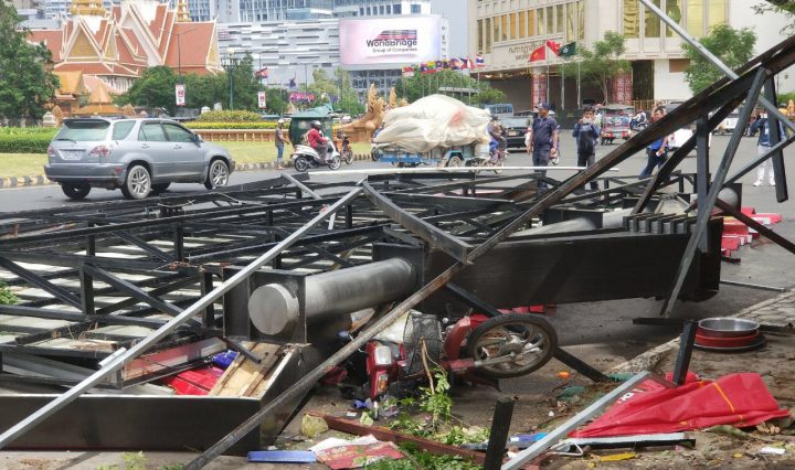 ភ្នំពេញ ៖ ភ្លៀងលាយលំនឹងខ្យល់កន្ត្រាក់បណ្តាលឲ្យដែកប៉ាណូផ្សាយពាណិជ្ជកម្មមួយផ្ទាំងធំបាក់ធ្លាក់រាយប៉ាយពេញផ្លូវសំណាងហើយដែលក្នុងហេតុការណ៍នេះមិនបណ្តាលឲ្យមានអ្នកគ្រោះថ្នាក់ឡើយគ្រាន់តែខូចខាតម៉ូតូសង់កូរ៉េ១គ្រឿងស្ទើរទាំងស្រុង។ ករណីនេះបានកើតឡើងកាលពីម៉ោងជាង១រសៀលនៅចំណុចជាប់ប៉ុស្តិ៍រដ្ឋបាលចតុមុខខណ្ឌដូនពេញក្បែររង្វង់មូលសម្តេចសង្ឃរាជជូន ណាតនៅបណ្តោយផ្លូវព្រះស៊ីសុវត្ថិ។ ប្រភពព័ត៌មានពីស្រ្តីម្នាក់ដែលគាត់ប្រកបរបរលក់នៅក្បែរប៉ាណូមួយផ្ទាំងធំស្ថិខខាងមុខប៉ុស្តិ៍រដ្ឋបាលចតុមុខនោះបានឲ្យដឹងថាខណៈដែលគាត់កំពុងតែលក់ដូរស្រាប់តែមេឃងងឹងស្លប់ក៏ស្រាប់តែធ្លាក់ខ្យល់កន្ត្រាក់ខណៈមេឃបានធ្លាក់ភ្លៀងតិចៗផងនោះបានធ្វើដែកប៉ាណូមួយផ្ទាំងធំនៅលើគាត់ល់ដូរបានបាក់ធ្លាក់មកផ្លូវលាន់គ្រាំងតែម្តង។ស្ត្រីរូបនោះបានបន្តថាខណៈដែលឃើញសភាពមិនស្រួលគាត់ក៏ប្រញ៉ាប់រត់ចេញទៅជ្រកក្បែរប៉ុស្តិ៍ប៉ូលិសតែក៏ចាត់ទុកជាសំណាងហើយដែលរបស់របរលក់ដូររបស់គាត់មិនរងការខូចខាតនោះ។ប៉ុន្តែម៉ូតូម៉ាកC១០០កូរ៉េមួយគ្រឿងមិនដឹងជារបស់អ្នកណានោះទេបានរងការខូចខាតដោយសារតែដែកប៉ាណូនោះធ្លាក់សង្កត់ចំនោះ។ អាជ្ញាធរមូលដ្ឋានខណ្ឌដូនពេញបានឲ្យដឹងថាក្នុងហេតុការណ៍ខ្យល់កន្ត្រាក់នោះដែរសម្រាប់នៅក្នុងមូលដ្ឋានខណ្ឌដូនពេញគឺមានបាក់ដើមឈើ បាក់បង្គោលភ្លើងនៅកន្លែងផ្សេងទៀតរួមទាំងប៉ើងដំបូលផ្ទះរួមទាំងការរដ្ឋានសំណង់នានាត្រូវប៉ើងធ្លាក់របស់របរផ្សេងៗផងដែរនិងជាពិសេសការបាក់ធ្លាក់ដែកប៉ាណូនោះសរុបជារួមមិនបណ្តាលឲ្យមានអ្នកគ្រោះថ្នាក់នោះទេ។ អាជ្ញាធរខណ្ឌដូនពេញបញ្ជាក់ទៀតថាចំពោះបាក់ធ្លាក់ដលមឈើនិងបាក់ប៉ាណូនេះដែរកម្លាំងអាជ្ញាធរបានចាត់ចែងរ៉ើចេញជាបន្ទាន់ដើម្បីកុំឲ្យមានការកកស្ទះចរាចរណ៍ដល់អ្នកដំណើរផងដែរ៕ជ្រោយពេជ្រ អានបន្ថែម ផ្ទាំងប៉ាណូផ្សាយពាណិជ្ជ បាក់ធ្លាក់រាយប៉ាយពេញផ្លូវក្នុងខណ្ឌដូនពេញ