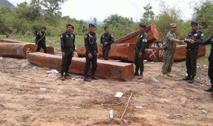 អាវុធហត្ថបង្រ្កាបឈើអារជ្រុងមុខកាត់ធំៗ ១១ដុំ ប្រគល់ឲ្យមន្រ្តីបរិស្ថាន