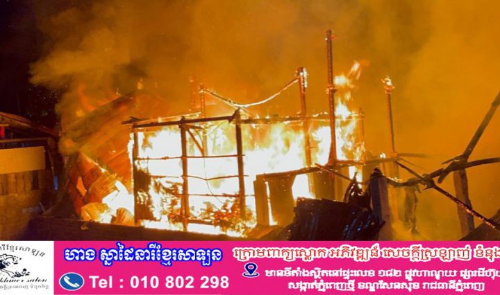 ភ្នំពេញ ៖ ផ្ទះប្រជាពលរដ្ឋជាច្រើនខ្នងរួមទាំងសម្ភារៈមានតម្លៃមួយចំនួន ត្រូវបានអគ្គីភ័យលេបត្របាក់អស់ បង្កការភ្ញាក់ផ្អើលដល់ប្រជាពលរដ្ឋរស់នៅក្បែខាងនិងសមត្ថកិច្ចជំនាញចេញរថយន្តជួយបាញ់ពន្លត់កាលពីវេលាម៉ោង៦:១៥ នាទីយប់ថ្ងៃទី១៦ ខែធ្នូ ឆ្នាំ២០២៥ ស្ថិតនៅលើផ្លូវ បេតុង … អានបន្ថែម ឆេះផ្ទះពលរដ្ឋមួយកន្លែងយ៉ាងសន្ធោសន្ធៅ ផ្អើលដល់មន្ត្រីជំនាញចេញរថយន្ដទៅជួយអន្តរាគមន៍បាញ់ពន្លត់