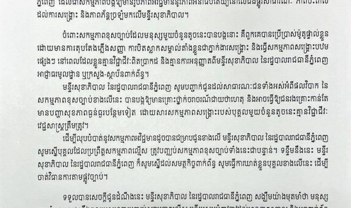 ខេត្តកណ្ដាល: កូនតិរច្ឆានម្នាក់ដោយសារឥទ្ធិពលនៃការប្រើប្រាស់គ្រឿងញៀនលើសកម្រិត បានវាយធ្វើបាបម្ដាយបង្កើតខ្លួនឯងច្រើនលើកច្រើនសានិងវាយបំផ្លិចបំផ្លាញទ្រព្យសម្បត្តិអស់មួយចំនួន ធ្វើឱ្យម្ដាយទ្រាំពុំបានរត់ទៅប្តឹងសមត្ថកិច្ចឱ្យឃាត់ខ្លួនកូន។ ករណីនេះបានកើតឡើងនៅថ្ងៃទី០៤ ខែមករា ឆ្នាំ២០២៤ វេលាម៉ោង ១៧និង៣០នាទី នៅចំណុចផ្ទះរបស់ជនរងគ្រោះ … អានបន្ថែម កូនវាយម្ដាយនឹងធ្វើឱ្យខូចខាតសម្ភារៈម្ដាយច្រើនលើកច្រើនសារទ្រាំពុំបានប្ដឹងសមត្ថកិច្ចឲ្យឃាត់ខ្លួន